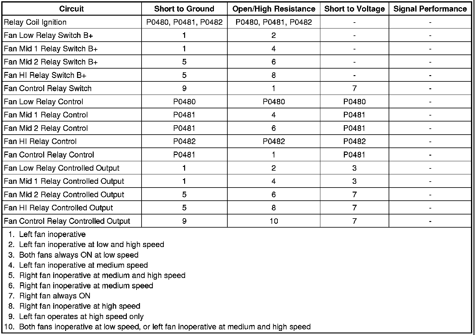 * DTC P0480, P0481, and P0482 run continuously when the conditions above are met.