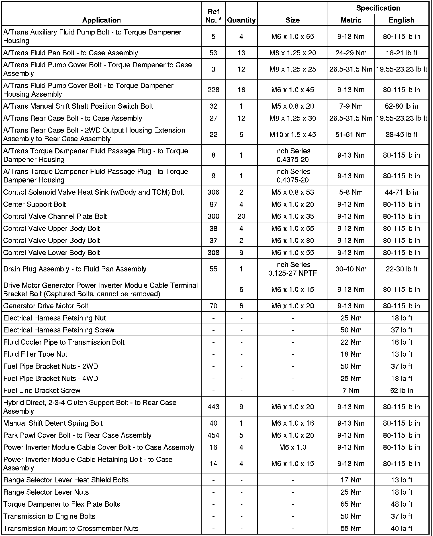 Fastener Tightening Specifications
