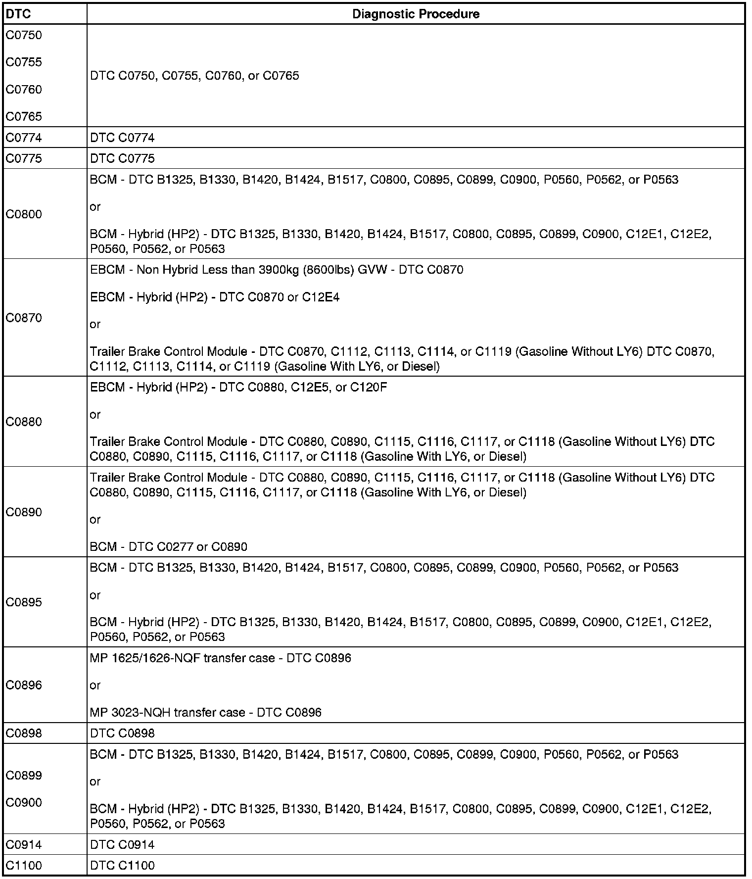 A L L Diagnostic Trouble Codes ( DTC )