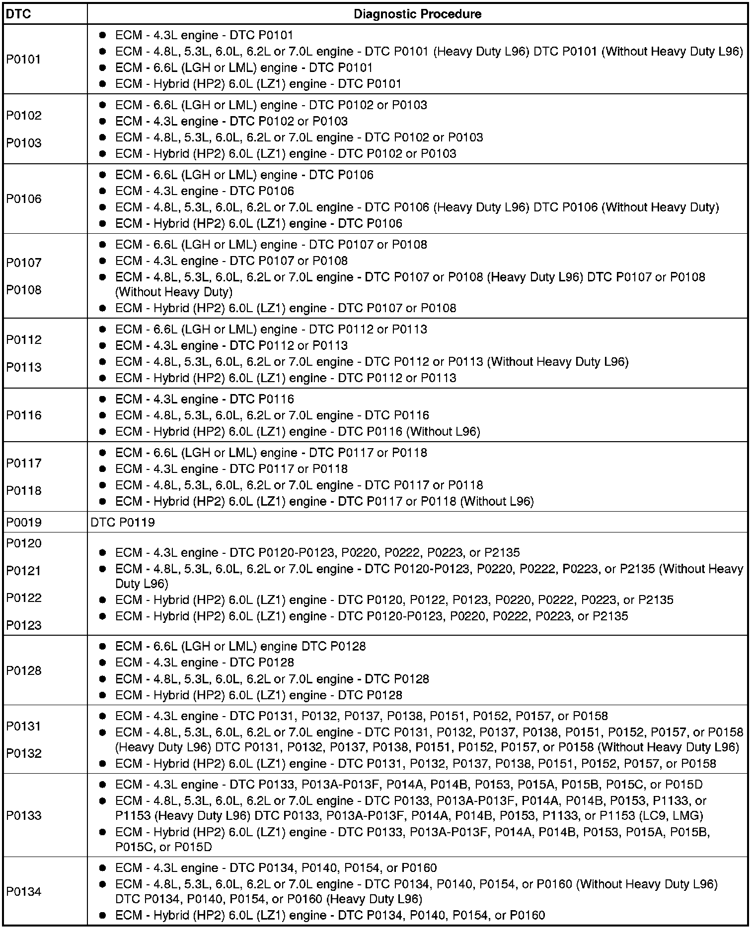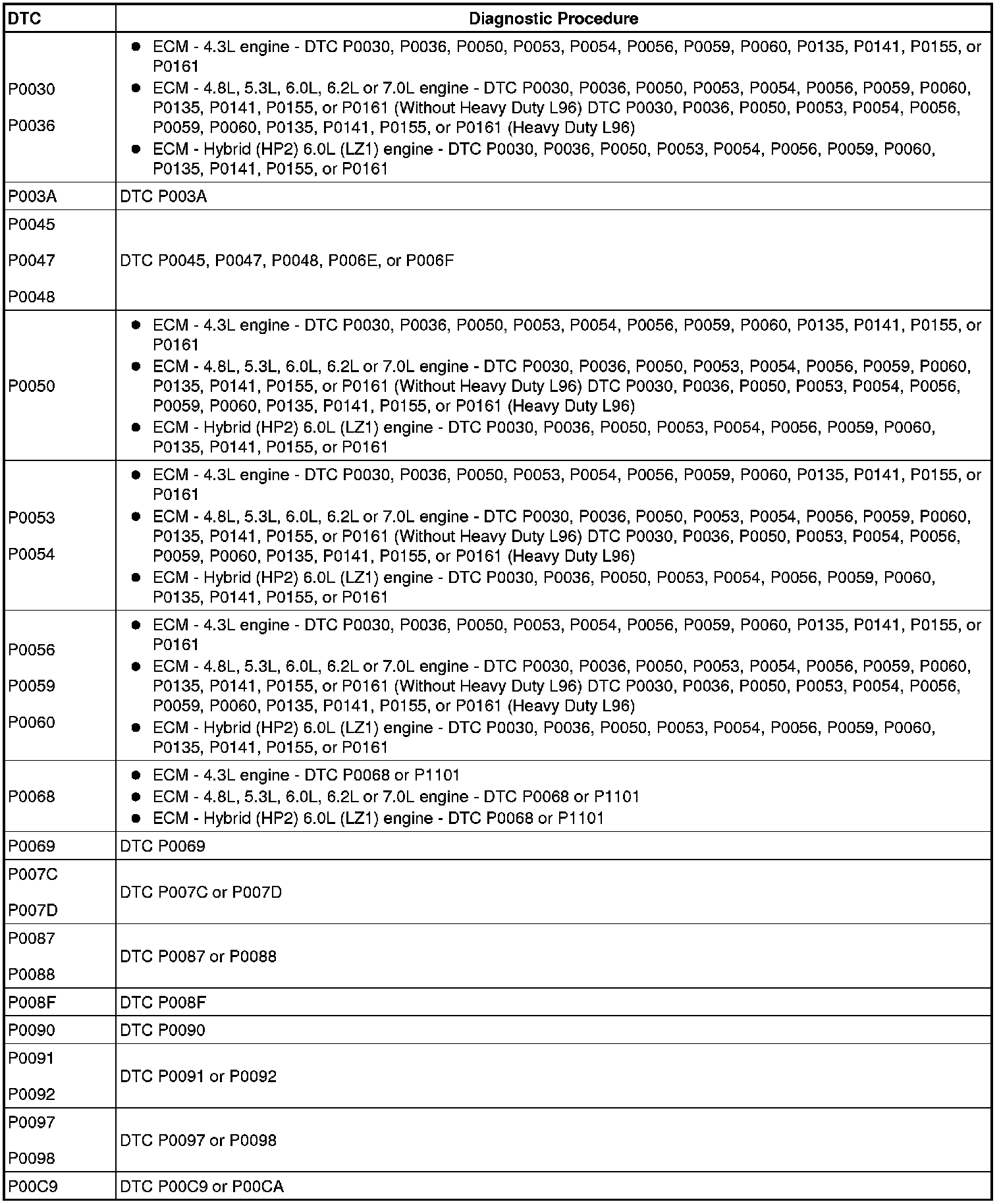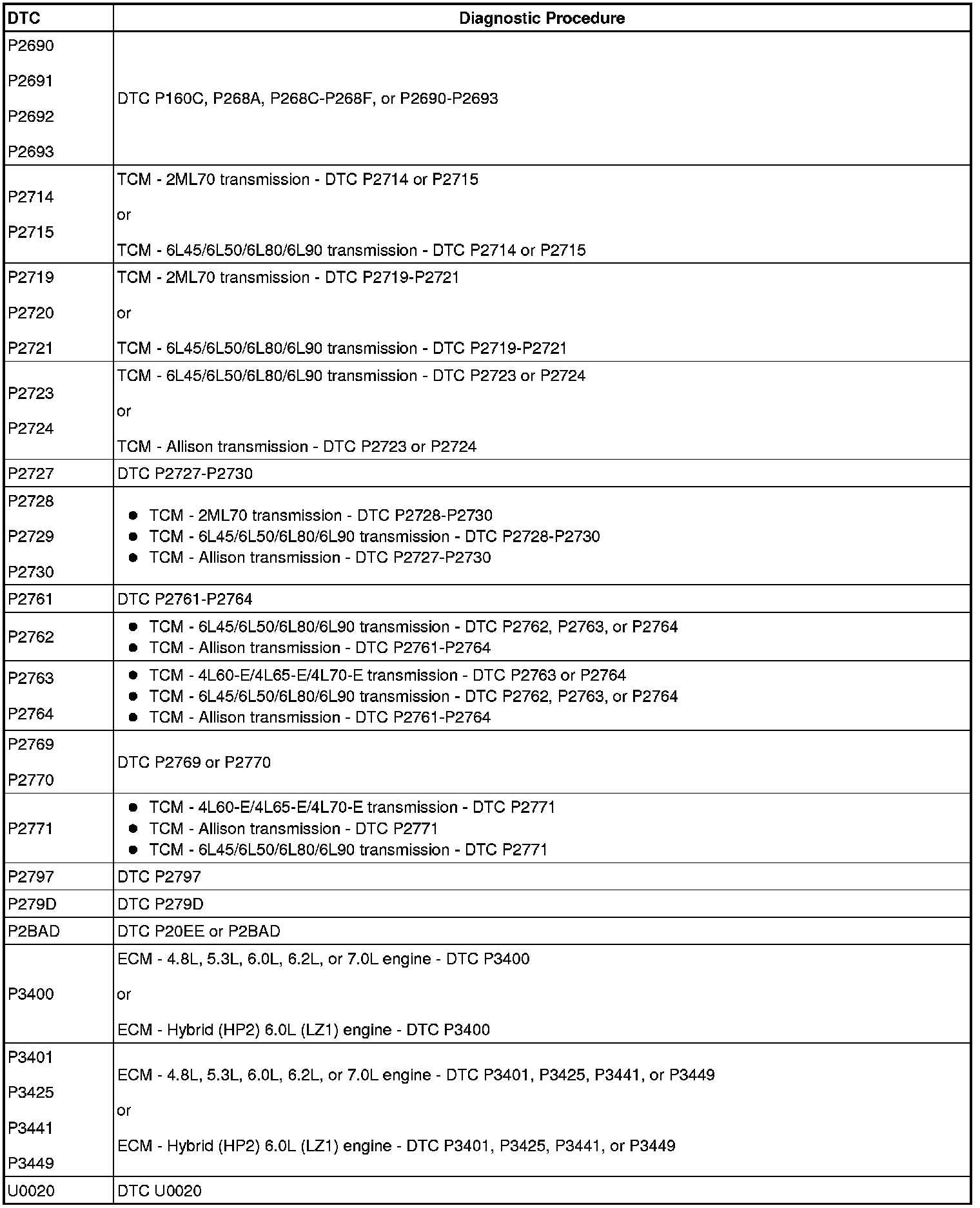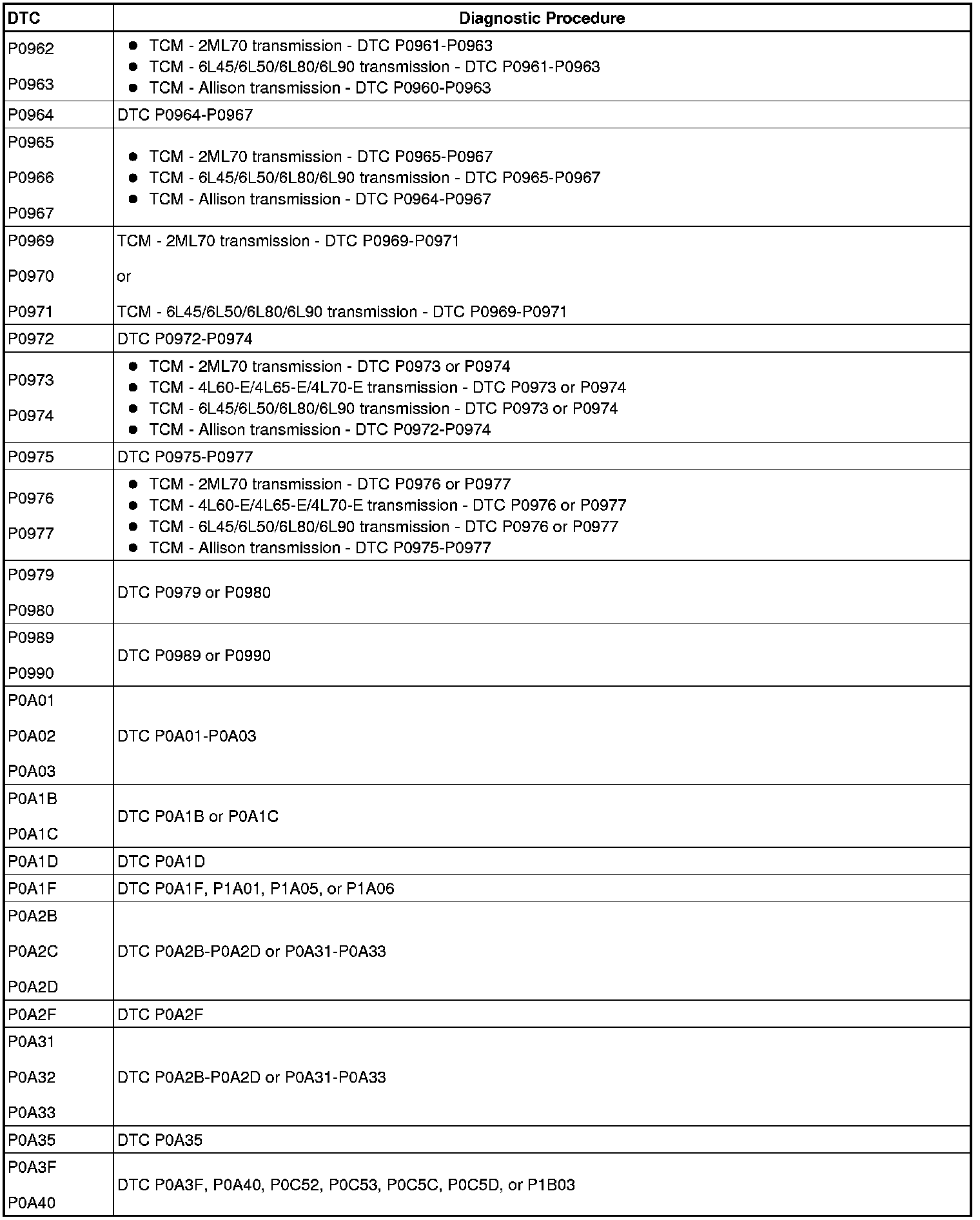 A L L Diagnostic Trouble Codes ( DTC )