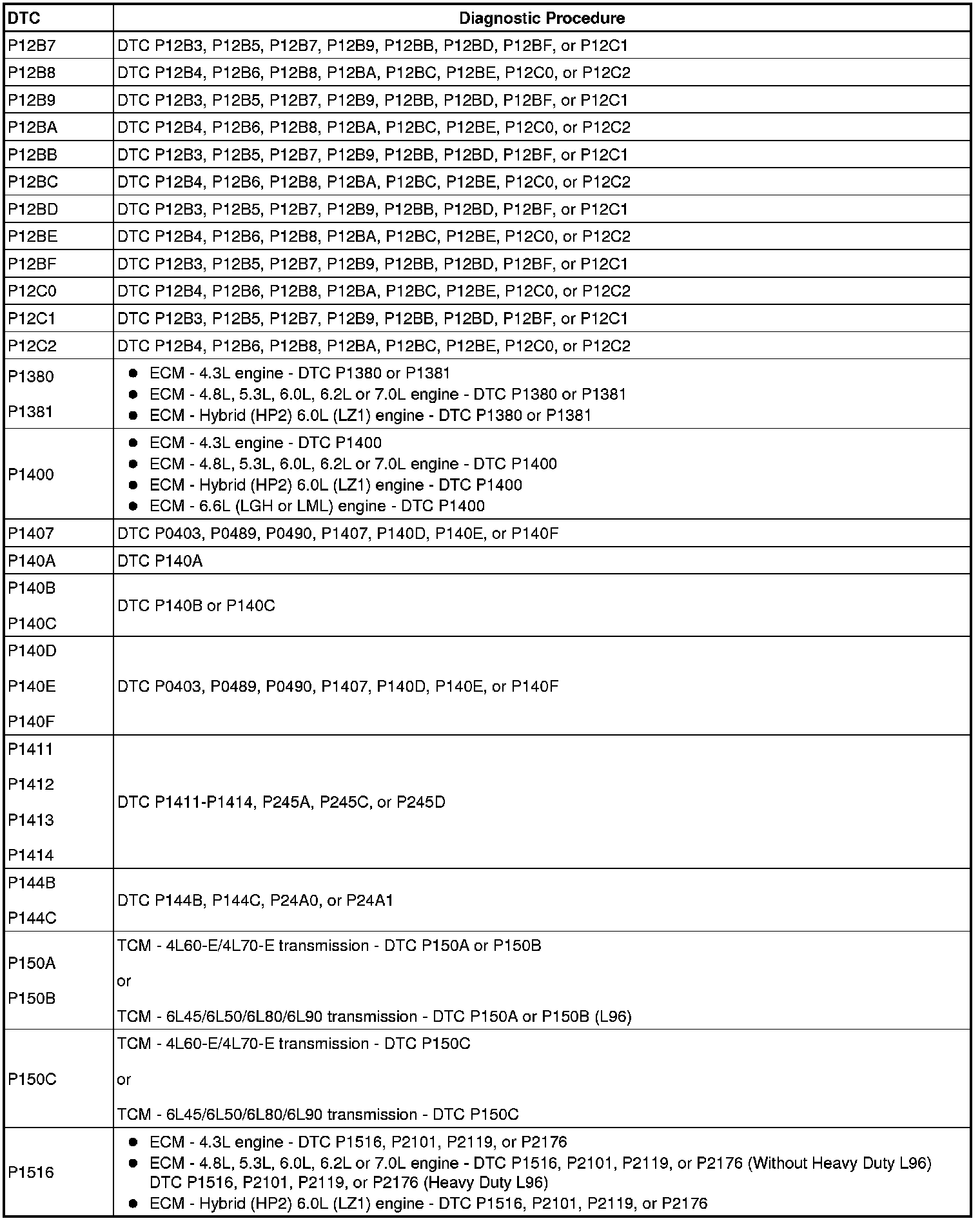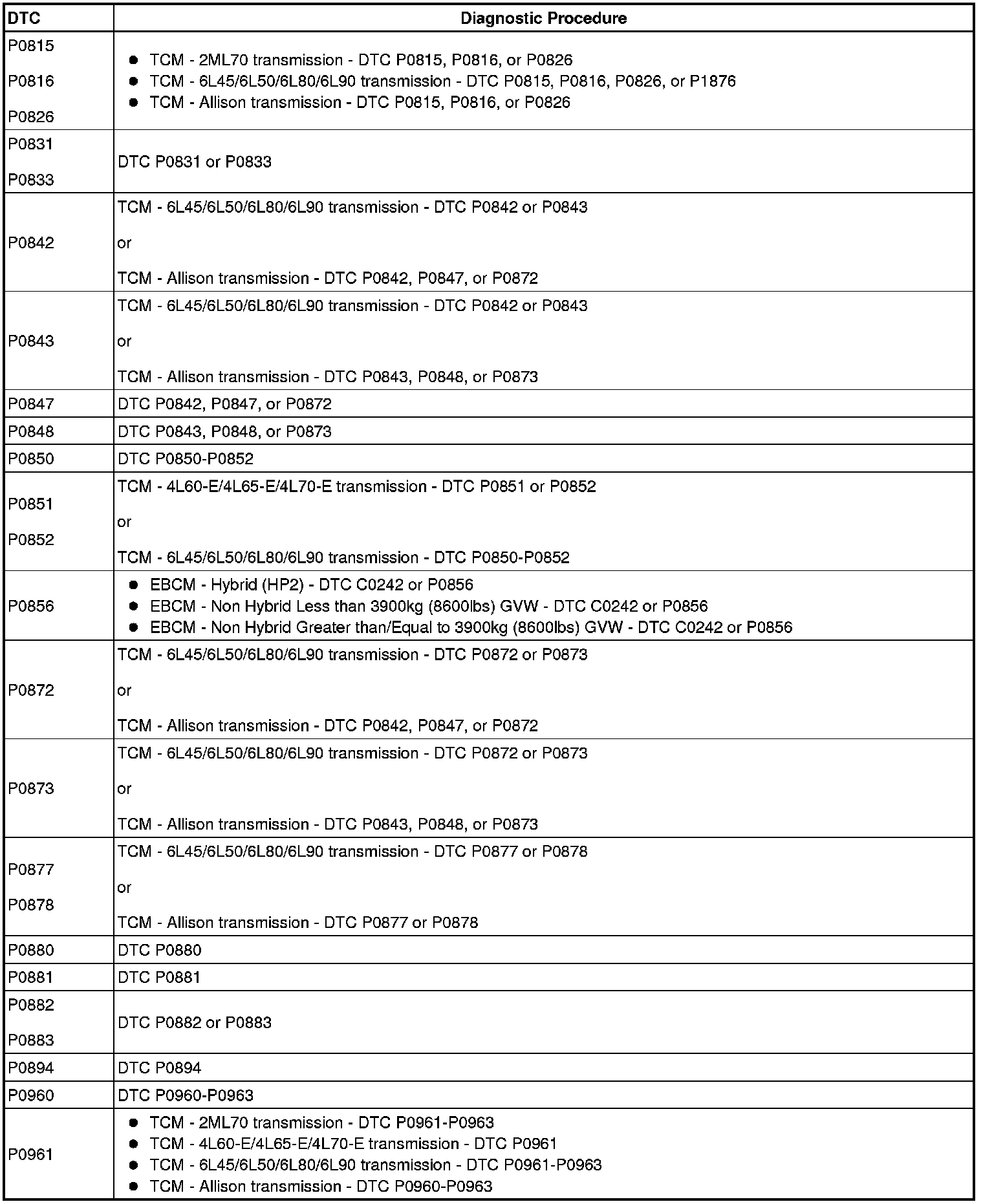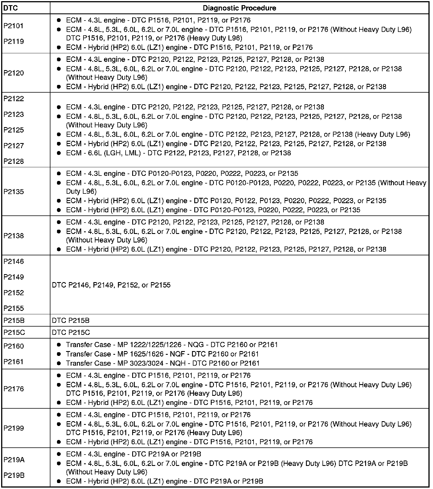 A L L Diagnostic Trouble Codes ( DTC )