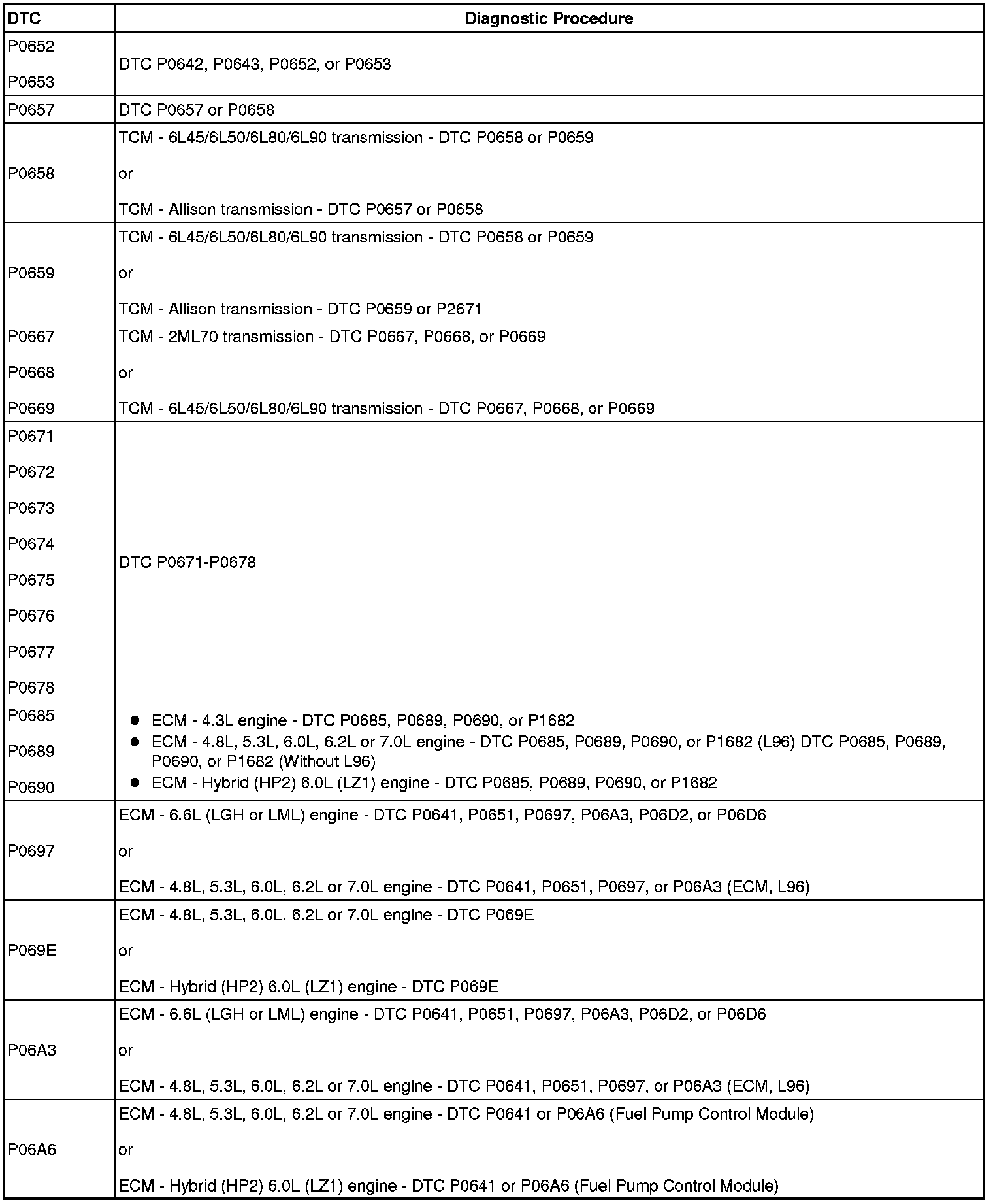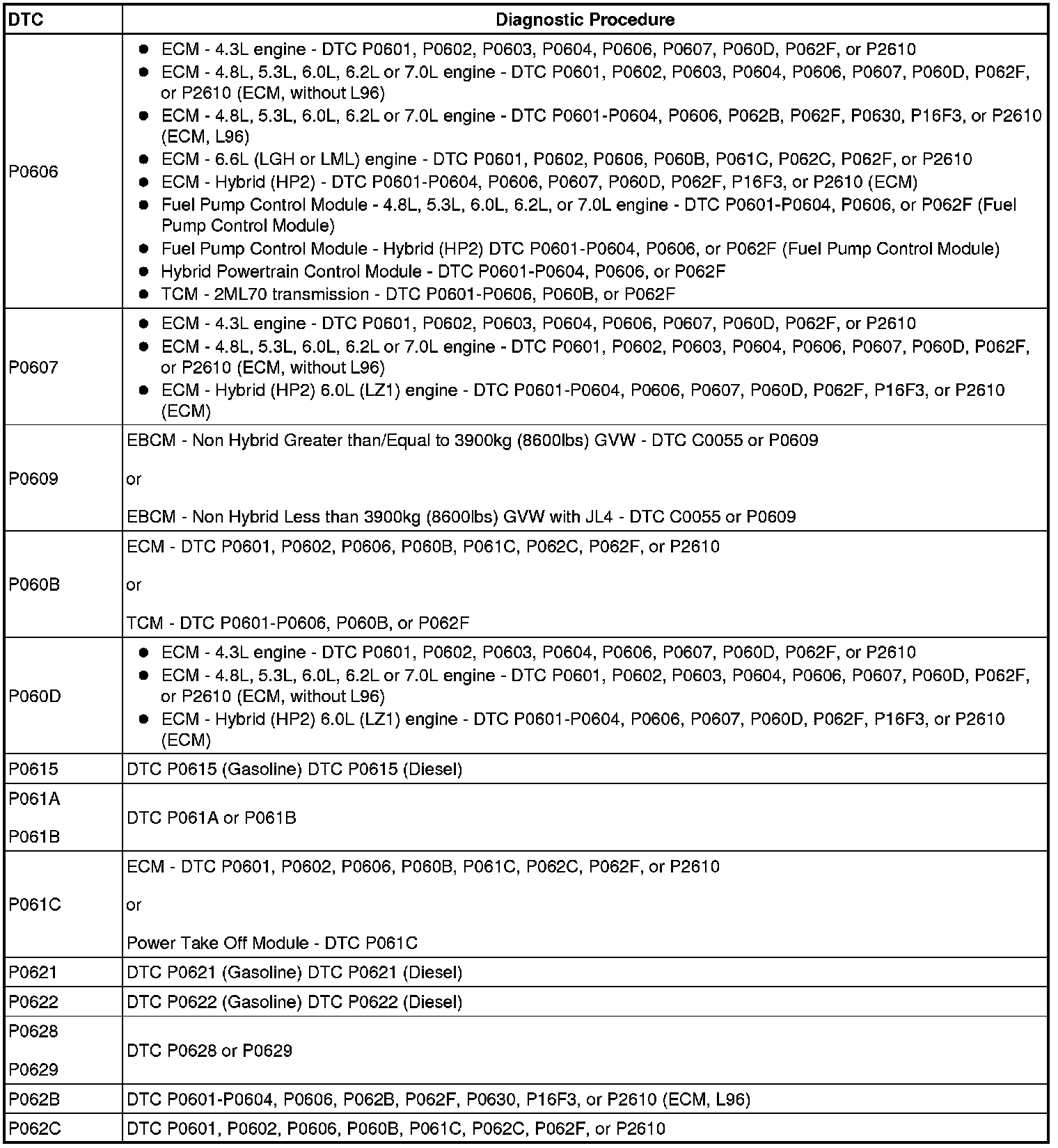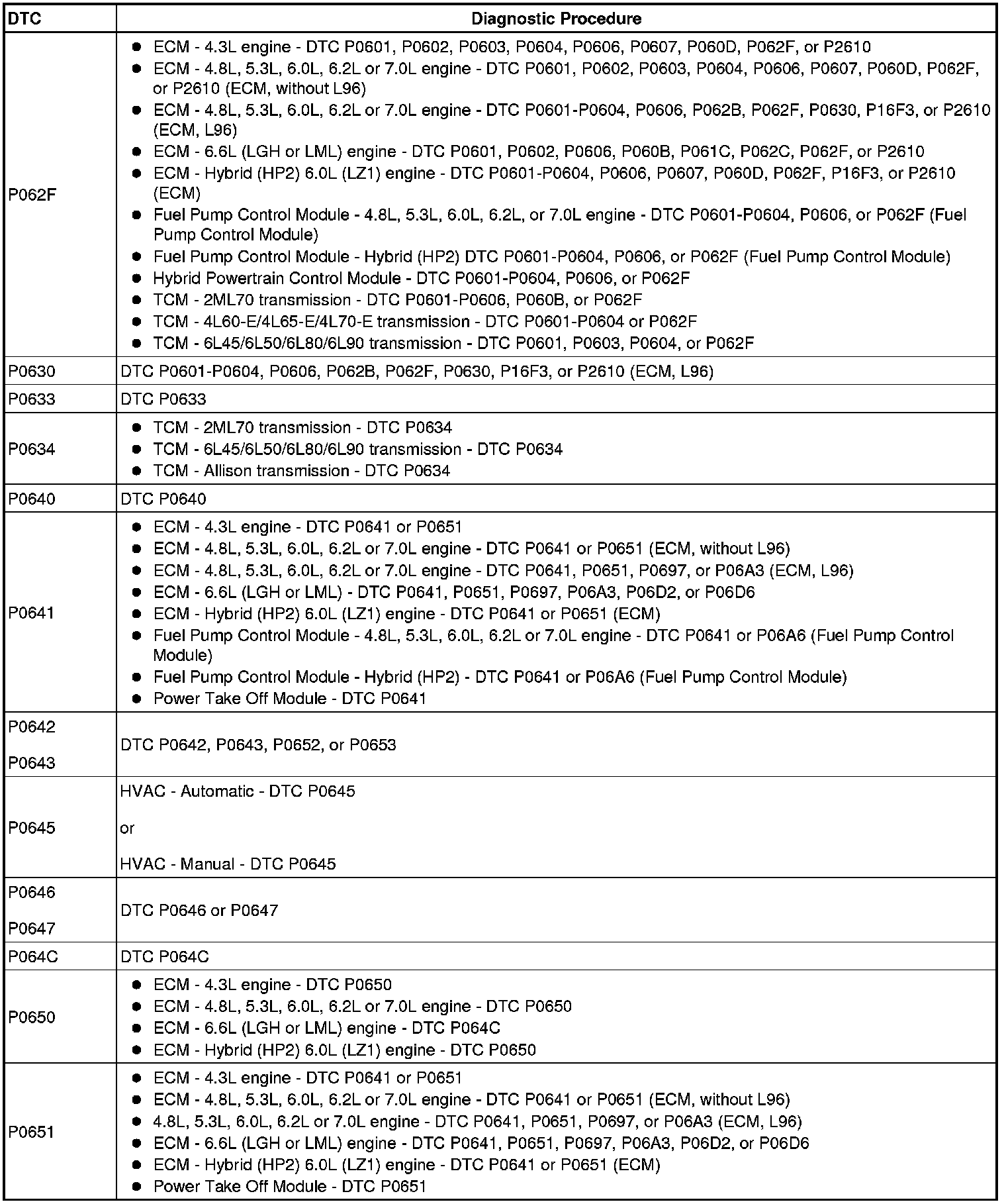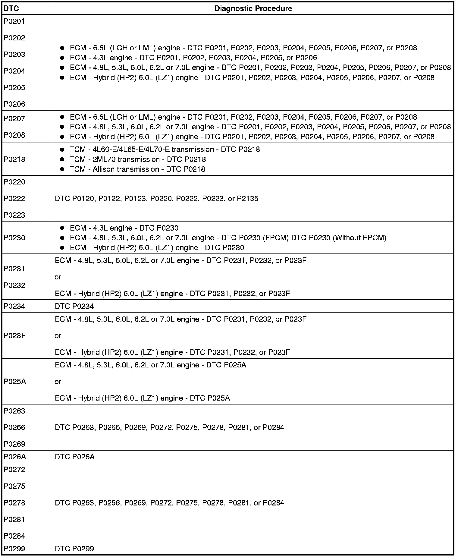 A L L Diagnostic Trouble Codes ( DTC )