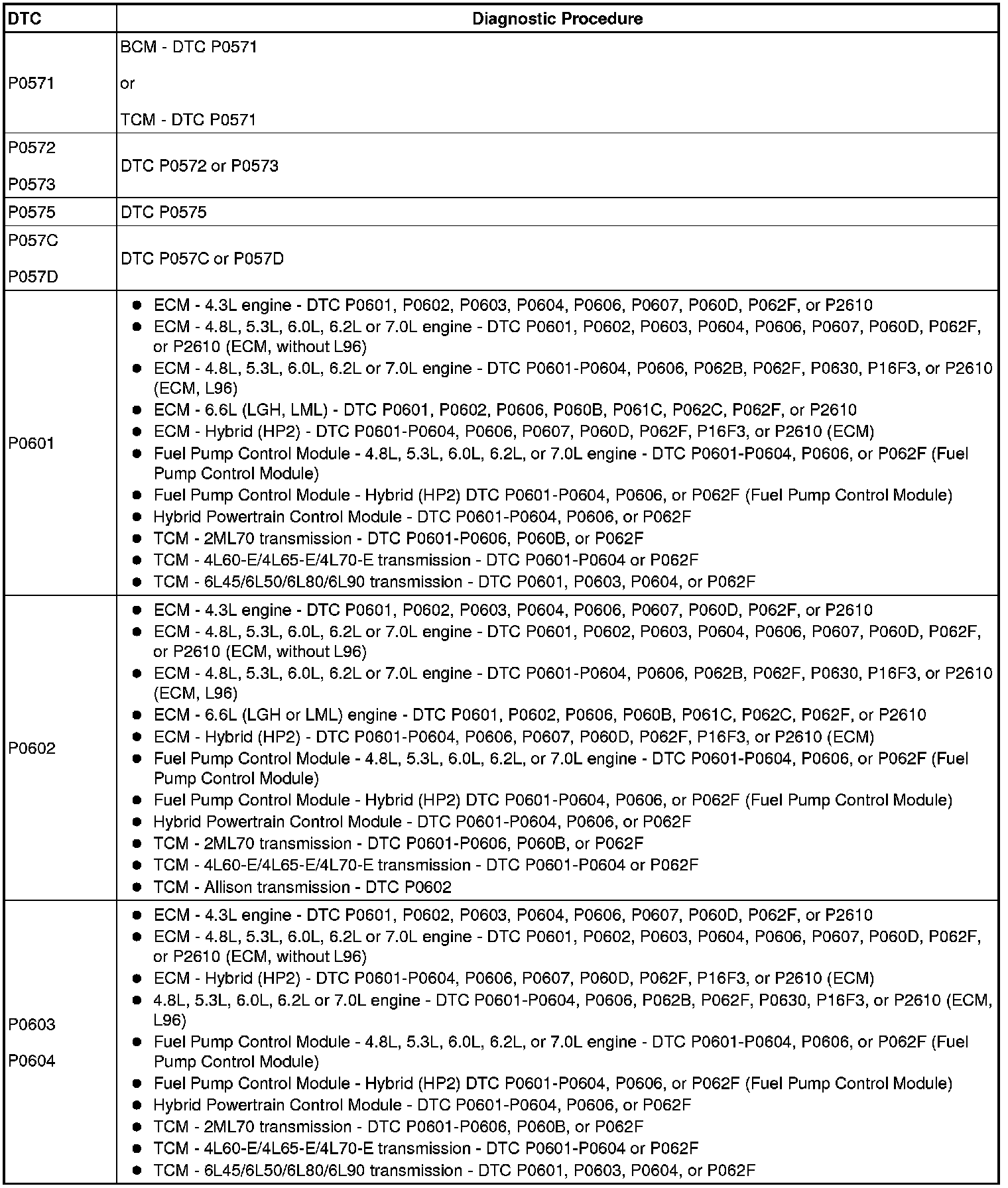 Diagnostic Trouble Code (DTC) List - Vehicle