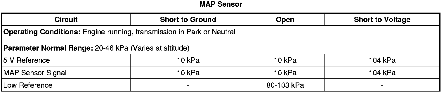 3. Use the observed MAP Sensor Scan Tool parameter that is closest to a value that is indicated in the first column.