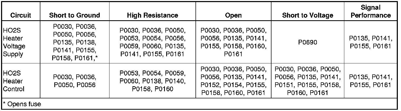 The ECM detects the HO2S heater is not within a specified resistance range at engine start-up for greater than 1 second.