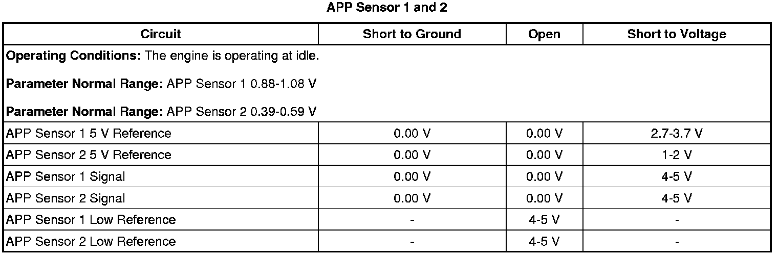 - Accelerator Pedal Position (APP) Sensor 1 Circuit Low Voltage