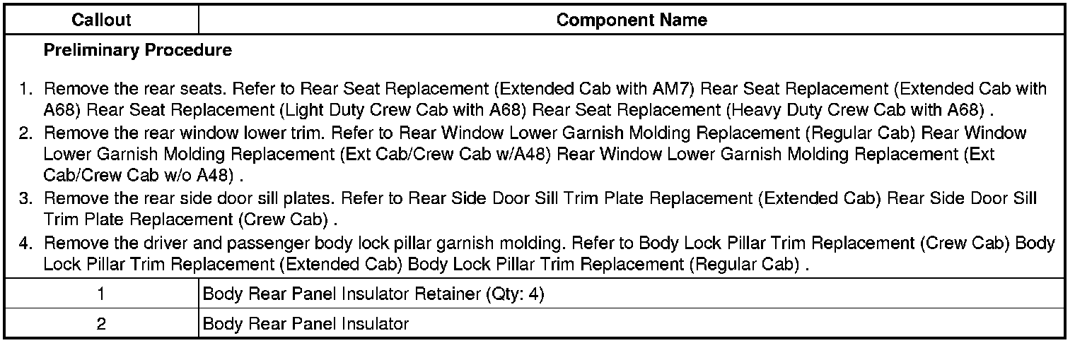 Body Rear Panel Insulator Replacement (Extended Cab/Crew Cab)