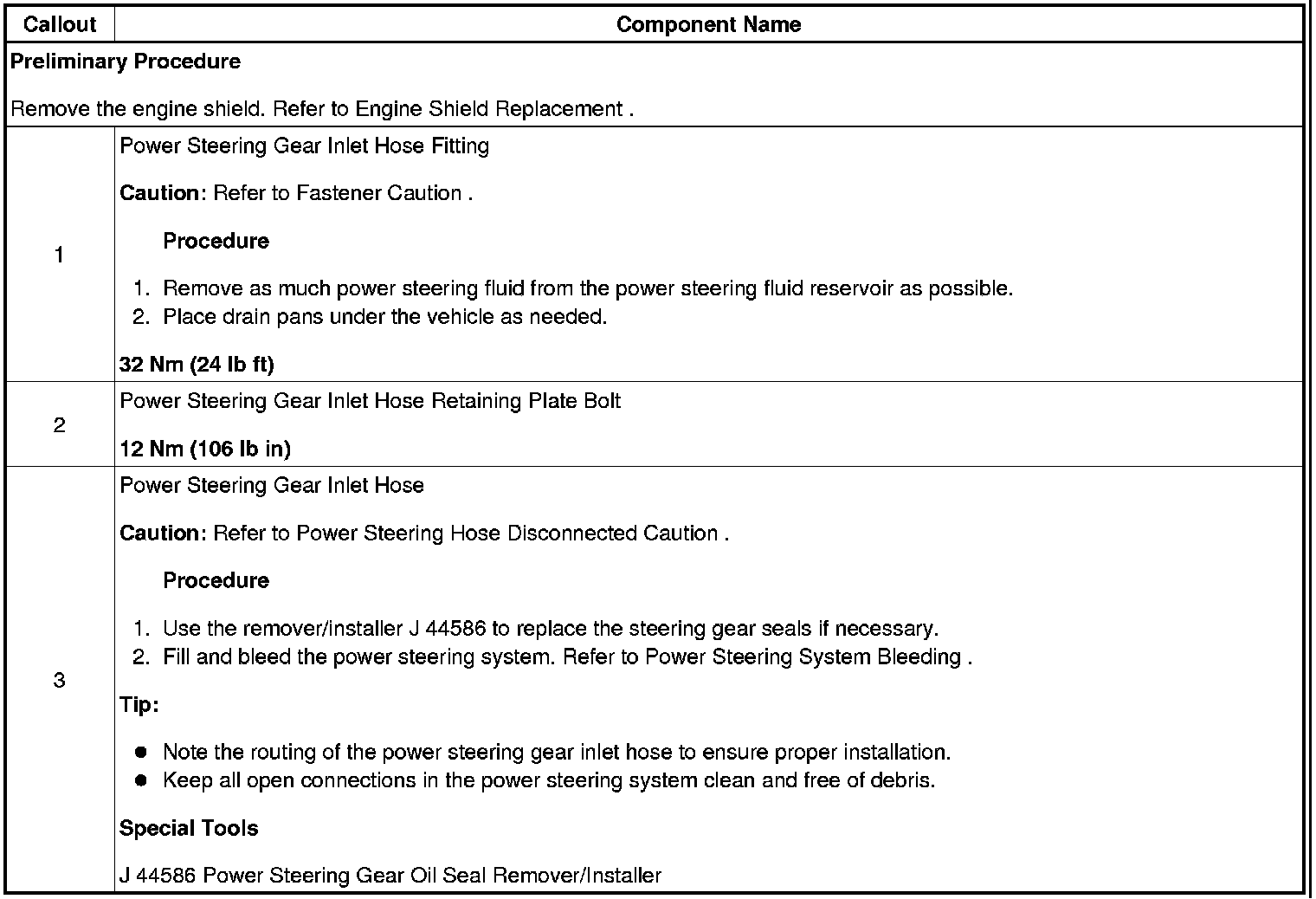 Power Steering Gear Inlet Pipe/Hose Replacement (Gas Without Hydroboost)