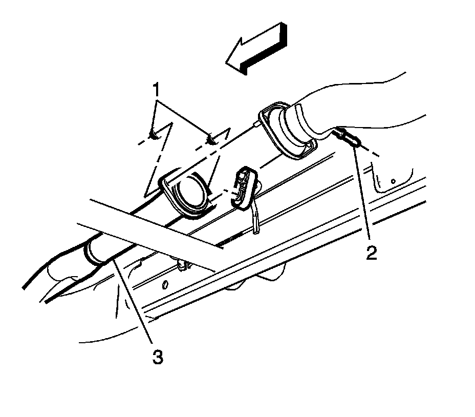 6. Install the exhaust muffler to catalytic converter (3) with the nuts (1) and tighten to 45 Nm (33 lb ft).