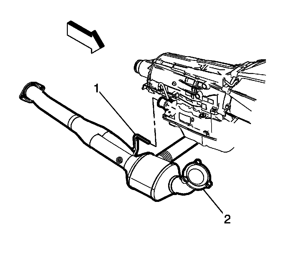 8. Separate the catalytic converter hanger rod (1) from the exhaust isolator.