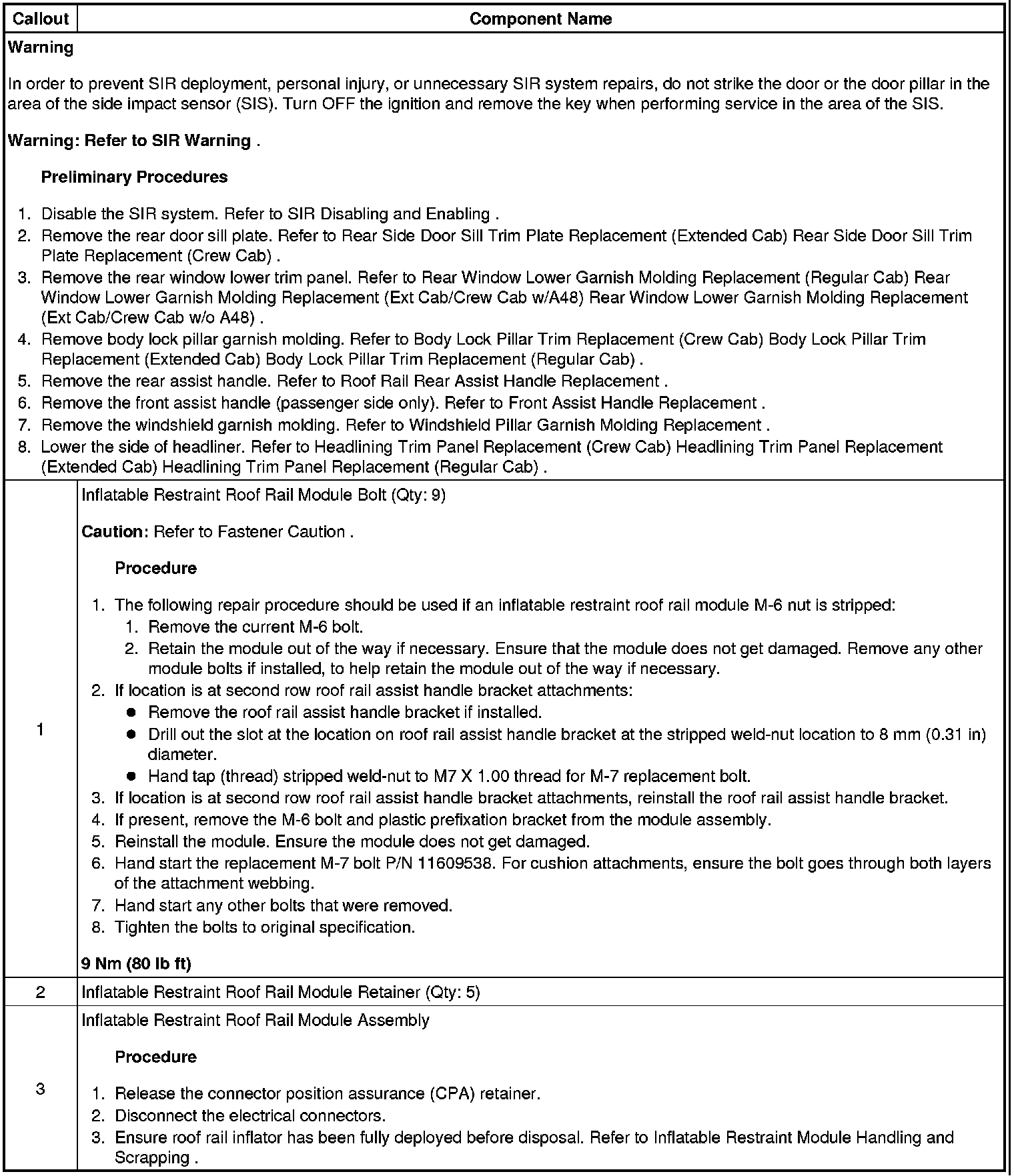 Roof Side Rail Inflatable Restraint Module Replacement (Extended Cab)