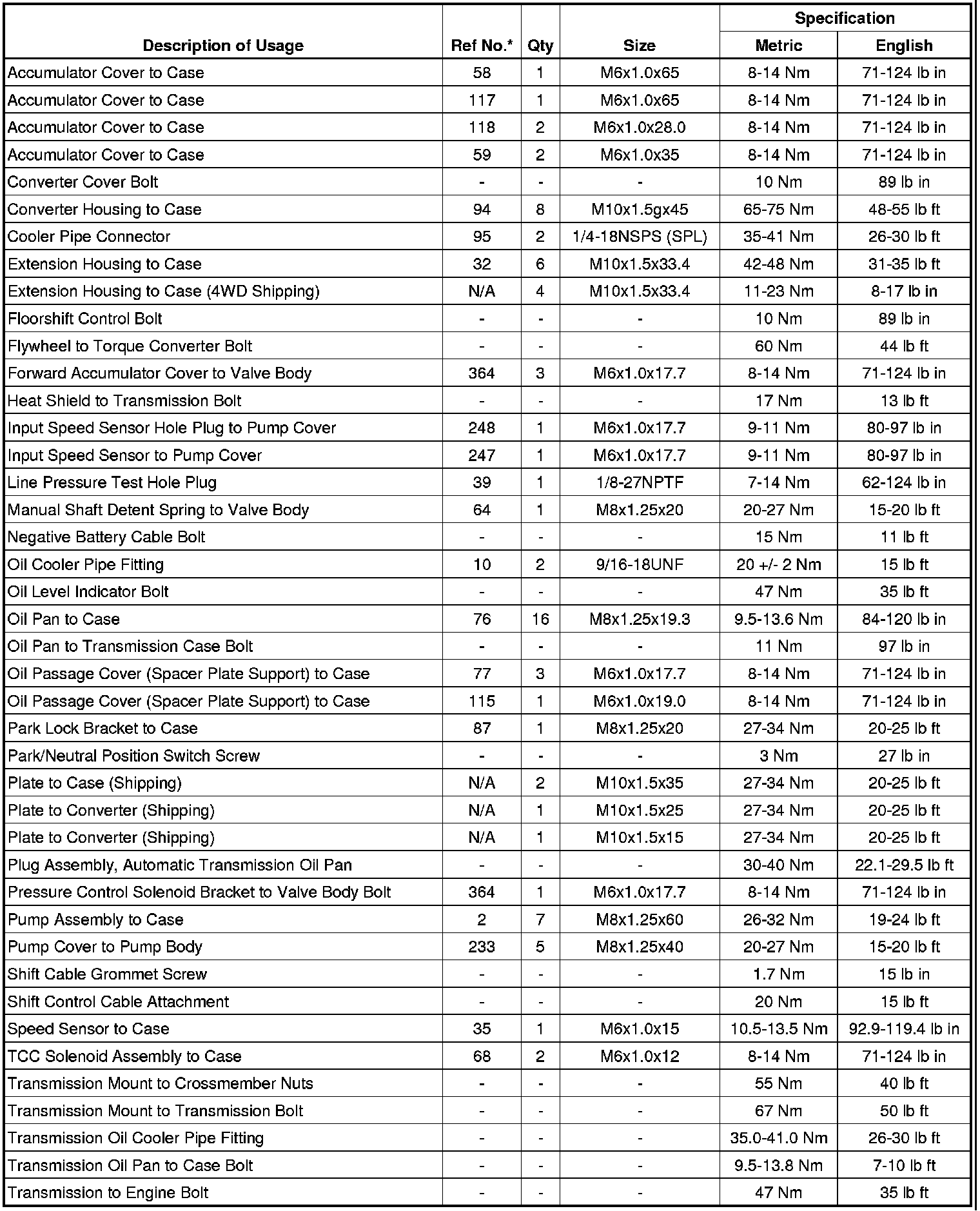 Fastener Tightening Specifications