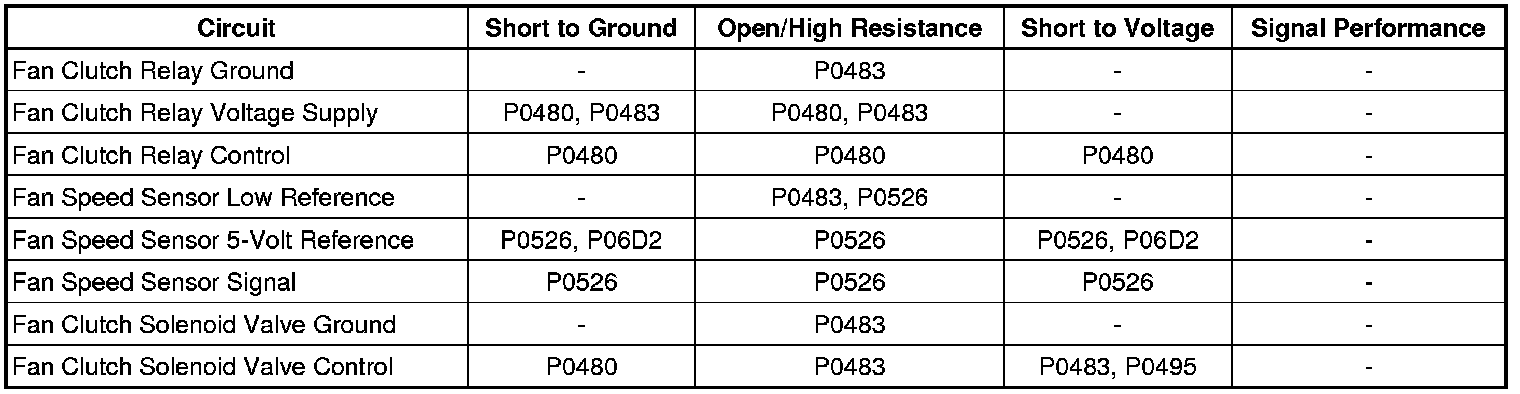5. If all the circuit/connections test normal, test or replace the cooling fan clutch assembly.