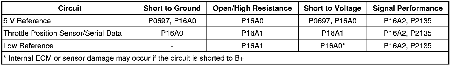 The ECM detects the position sensor signal voltage is less than 1.45 V for greater than 5 s.
