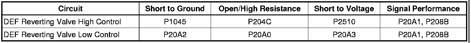 * Open or shorted DEF Reverting Valve Low Control circuit