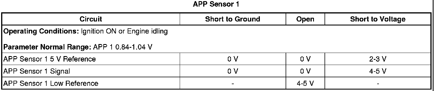 - Accelerator Pedal Position (APP) Sensor 1 Circuit High Voltage