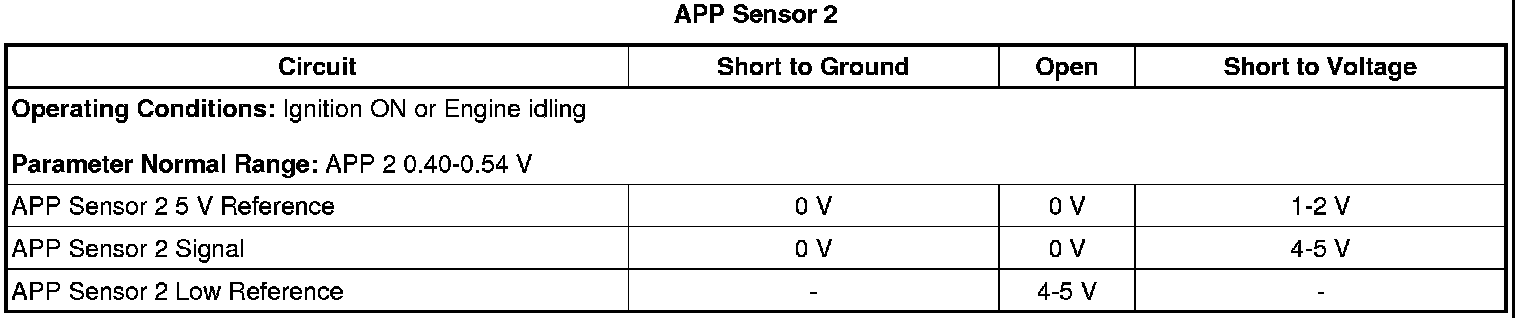 - Accelerator Pedal Position (APP) Sensor 2 Circuit High Voltage