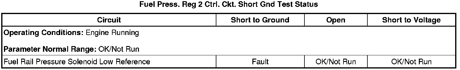 * Fuel Press. Reg. 2 Ctrl. Ckt. Short Gnd Test Status