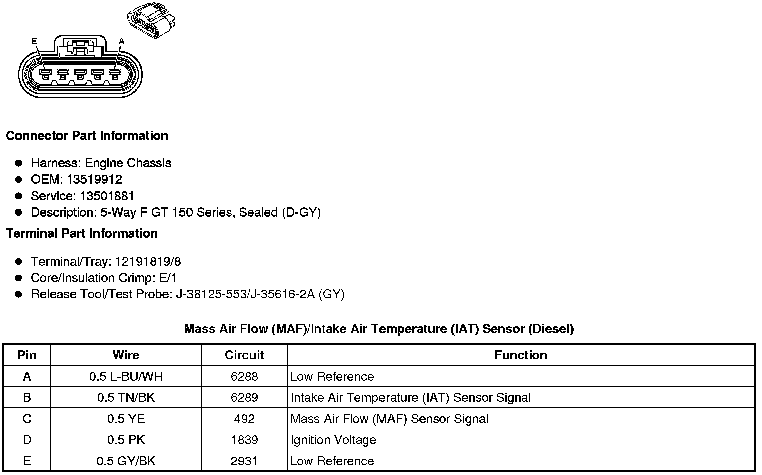 Mass Air Flow (MAF)/Intake Air Temperature (IAT) Sensor (Diesel)