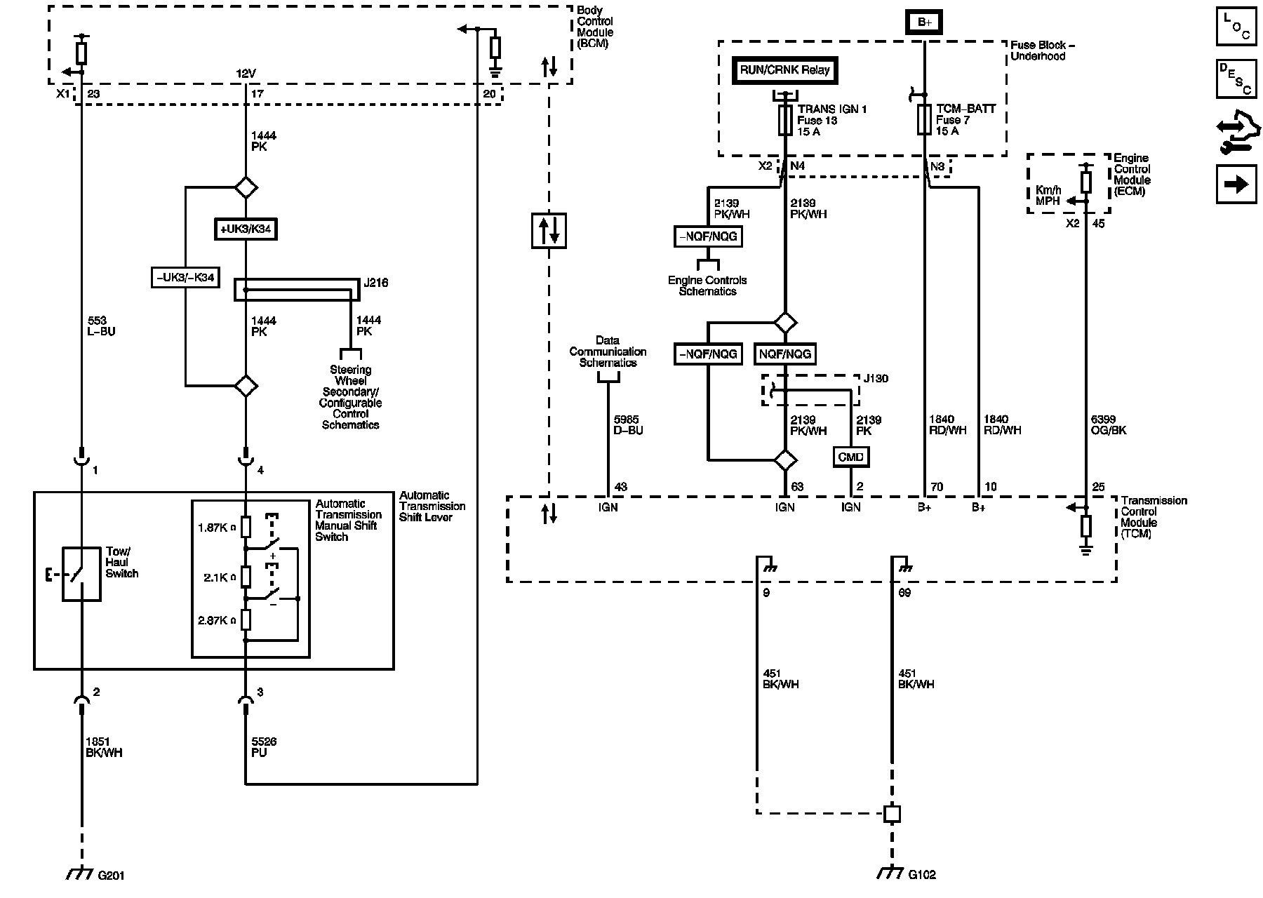 Module Power, Ground, Driver Shift Request Switch, Tow/Haul Switch, and Serial Data