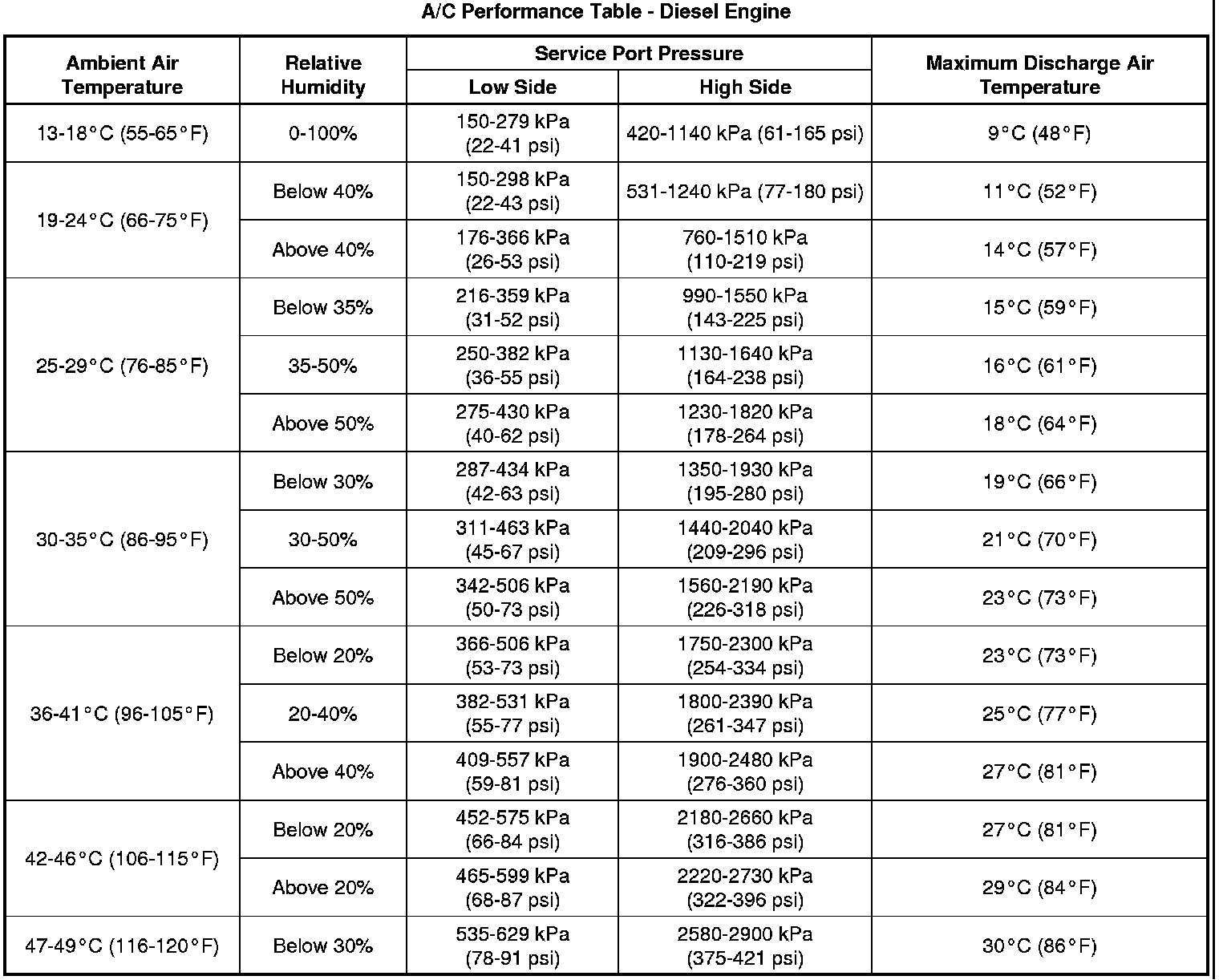 Air Conditioning (A/C) System Performance Test (Diesel Engine)