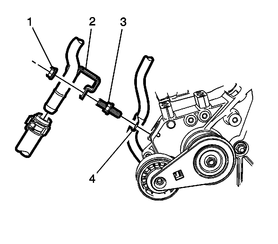 5. Install the engine harness stud clip nut (3) and engine harness retainer (4) and tighten to 10 Nm (89 lb in).