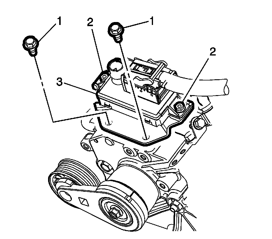 11. Remove the generator. Refer to Generator Replacement (V6) Generator ReplacementGenerator Replacement (V8) Generator ReplacementGenerator Replacement (Diesel) Generator Replacement.