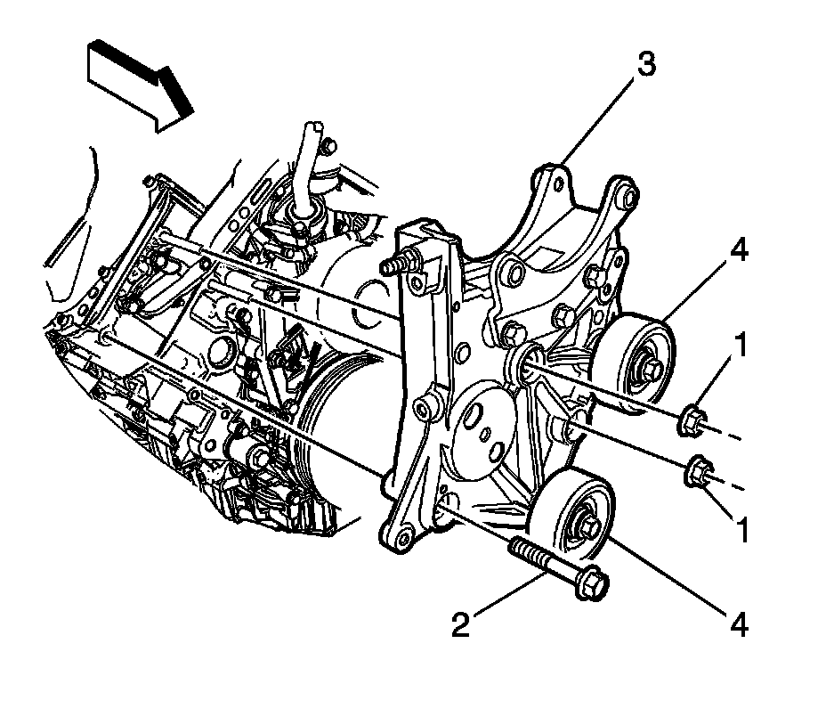 14. If replacing the generator bracket, remove the idler pulleys (4) and transfer to the new generator bracket.
