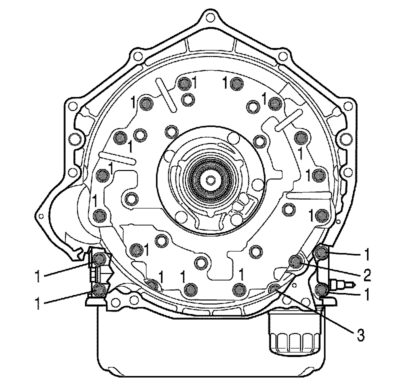 Caution: Refer to Torque Converter Housing/Low and Reverse Clutch Housing Bolt Size Caution Torque Converter Housing/Low and Reverse Clutch Housing Bolt Size Caution.