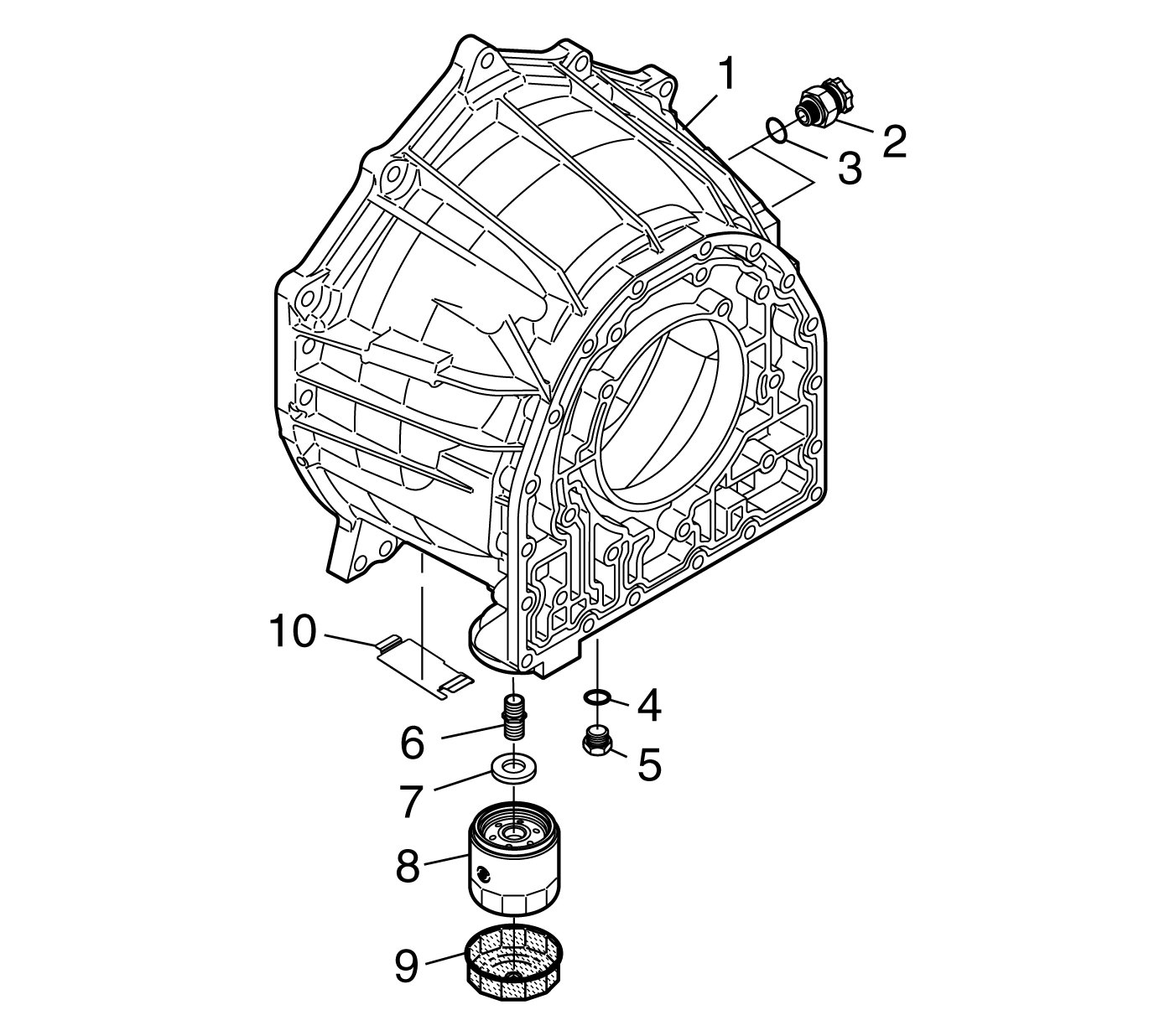 18. Install the transmission external oil filter by hand until the gasket on the filter touches the converter housing.