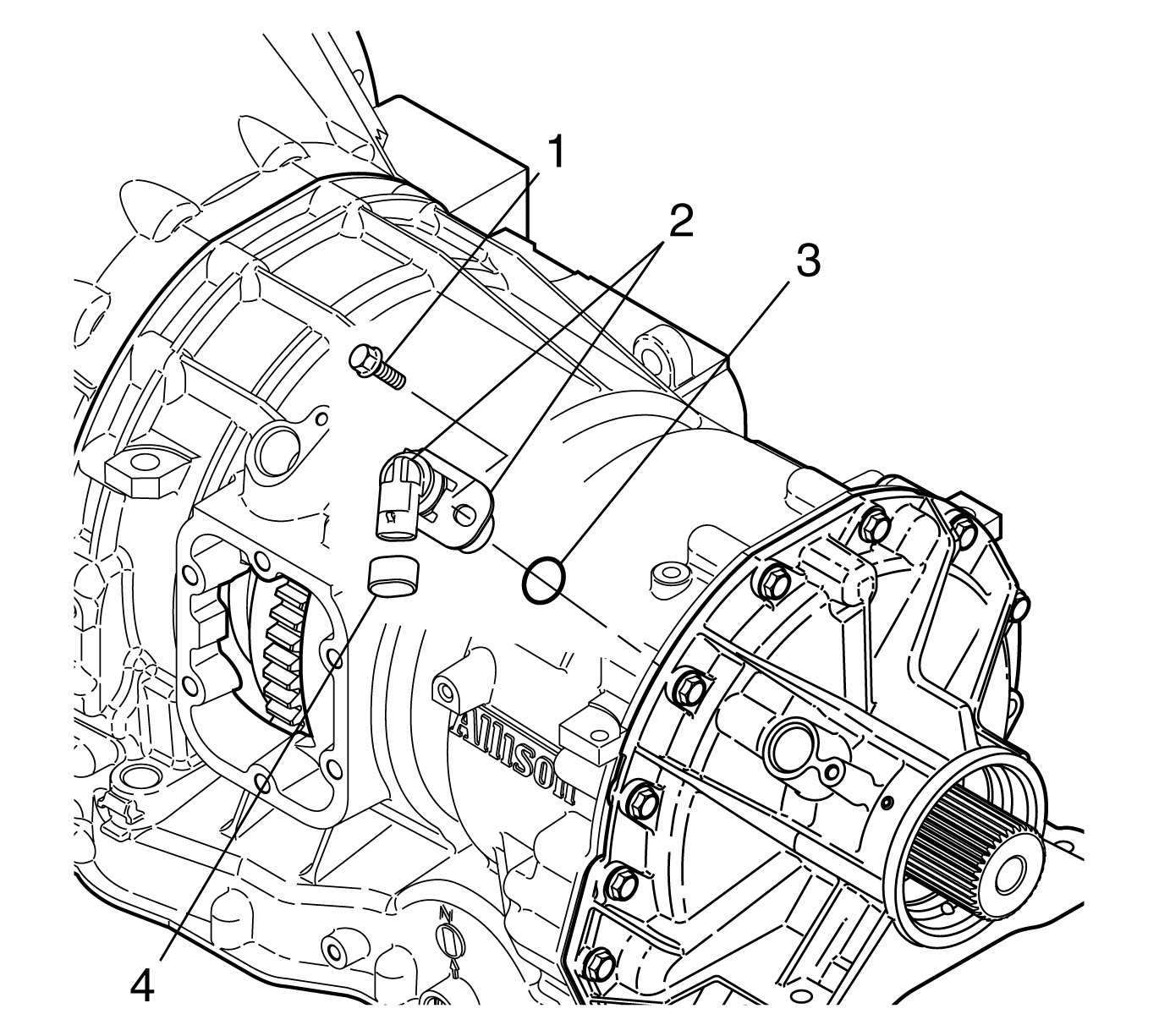 1. Install the vehicle speed sensor O-ring (3) onto the output speed sensor (OSS) (2).
