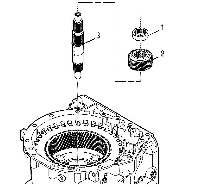 1. Remove, as a unit, the main shaft (3), the intermediate sun gear (2), and the sun gear spacer (1).