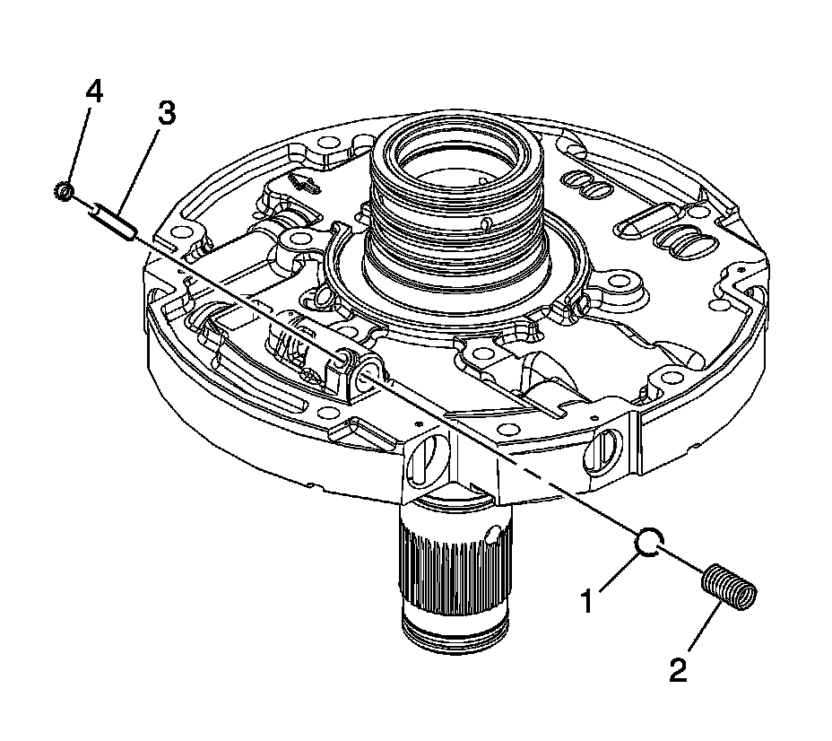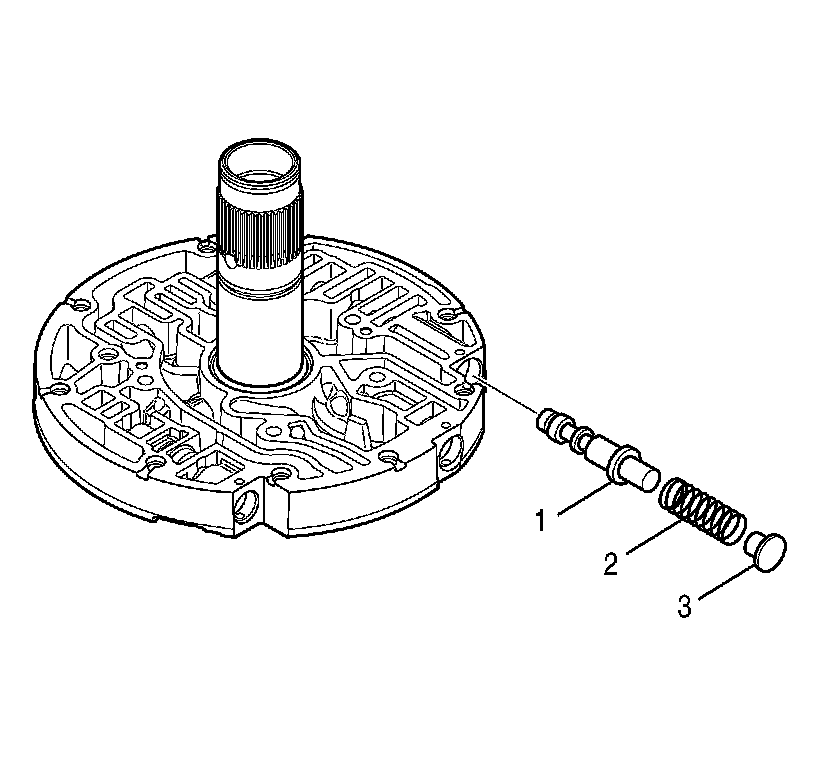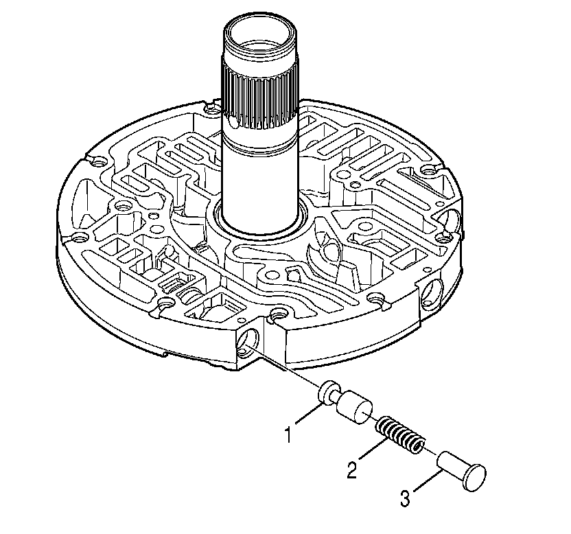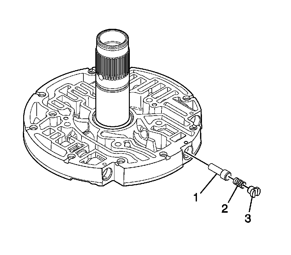 15. Remove the stop (3), spring (2) and the 1-2-3-4 clutch backfill valve (1).