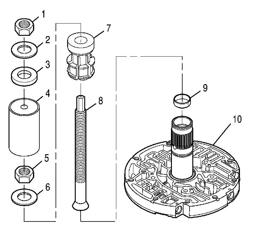 3. Install J 44529 -2 bolt (8) and J 44529 -1 extractor (7) into the bushing (9).