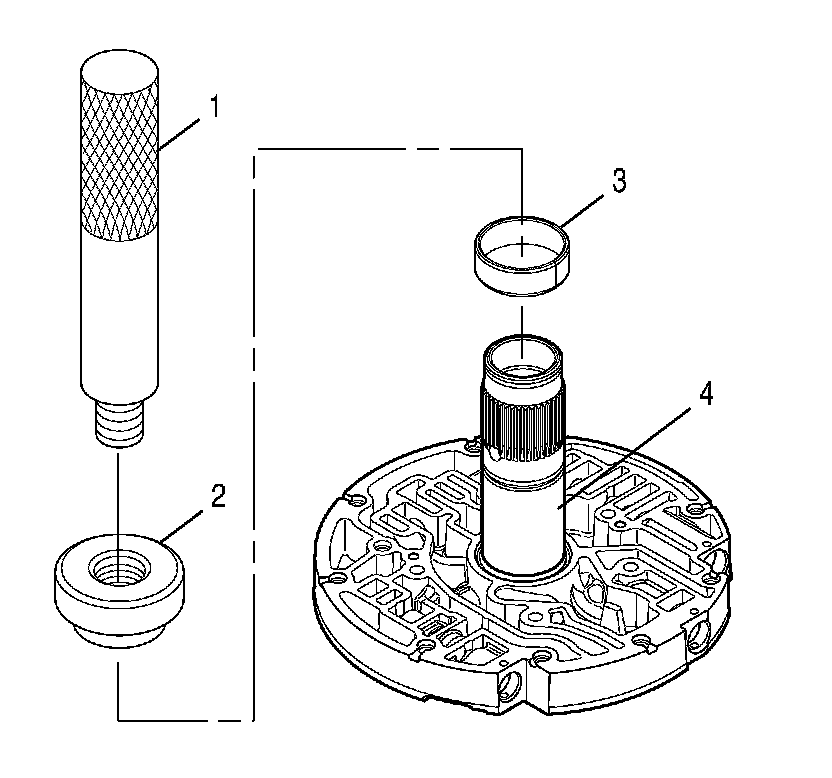 Note: The preferred method for installing the stator shaft bushing is to use J 43774 - installer and a press. If a press is not available, use J 43774 - installer and J 8092 - driver universal driver. If the bushing will be installed without a press, install the large end of J 43774 - installer (2) onto J 8092 - driver (1).