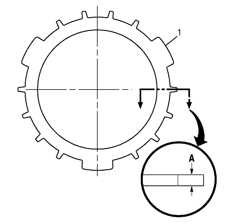 1. Measure the thickness of each low and reverse clutch backing plate (1) at dimension A.