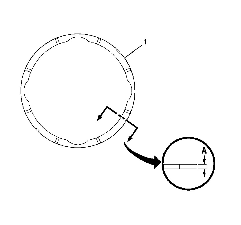 1. Measure the thickness of the thrust washer (1) at dimension A.