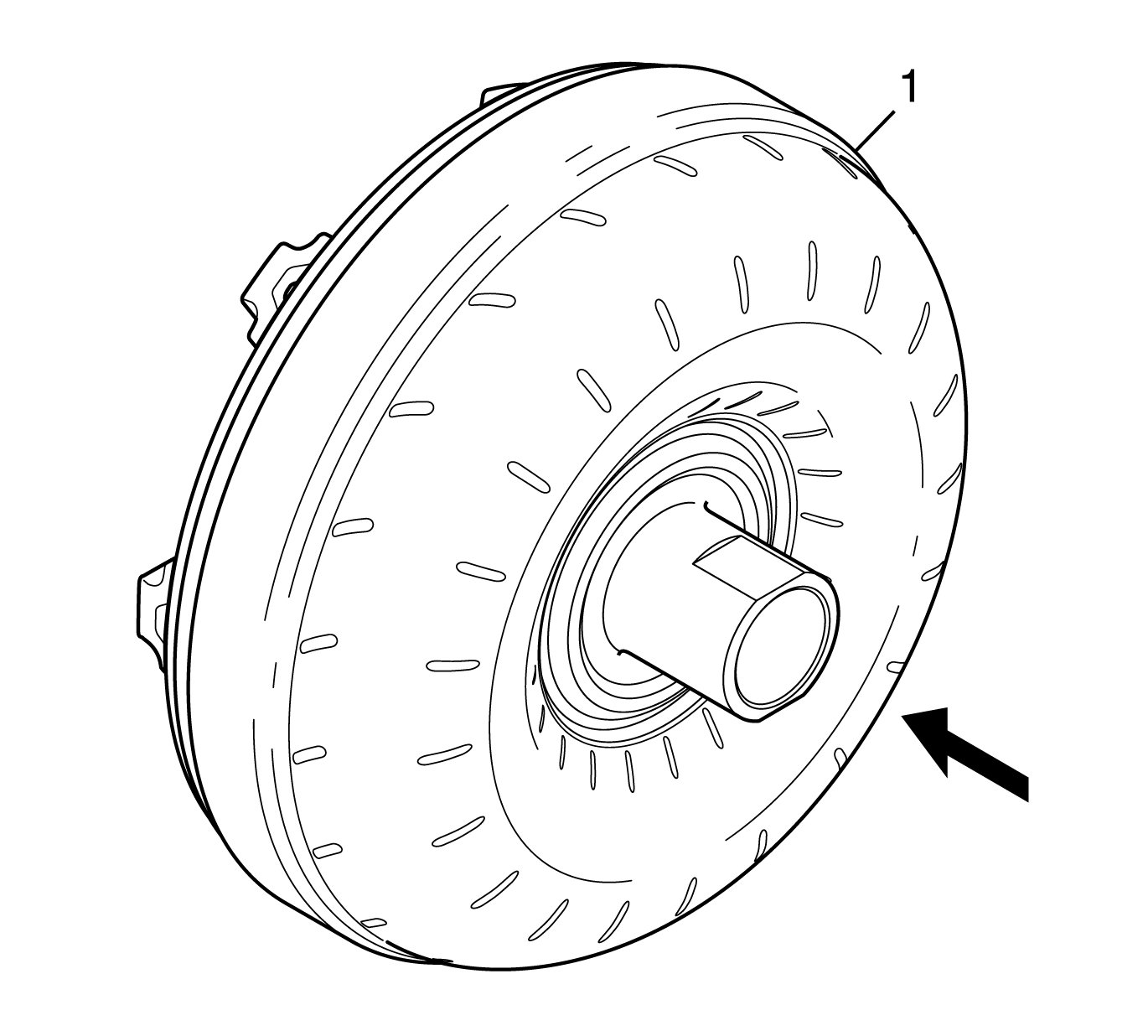 1. Remove the transmission fluid from torque converter (1).
