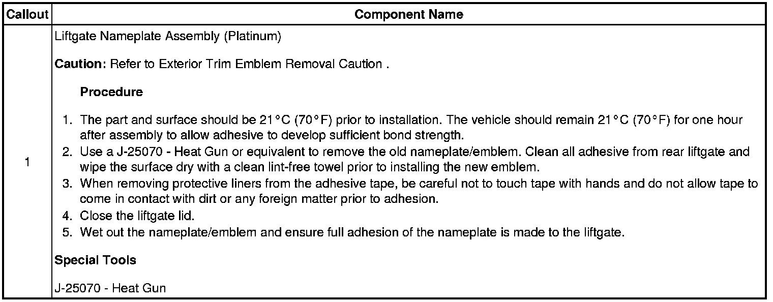 Liftgate Emblem/Nameplate Replacement (Platinum)