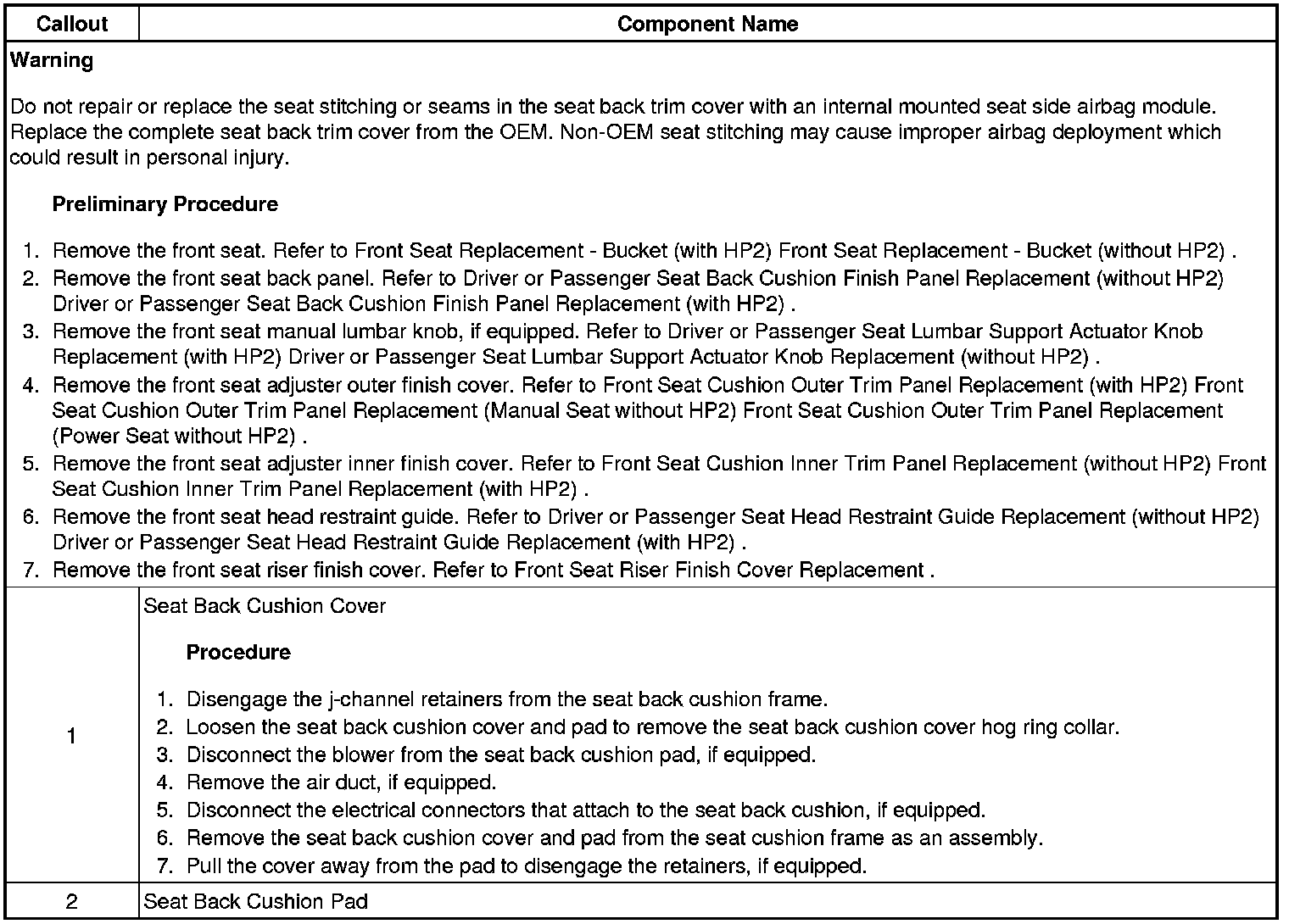 Driver or Passenger Seat Back Cushion Cover and Pad Replacement