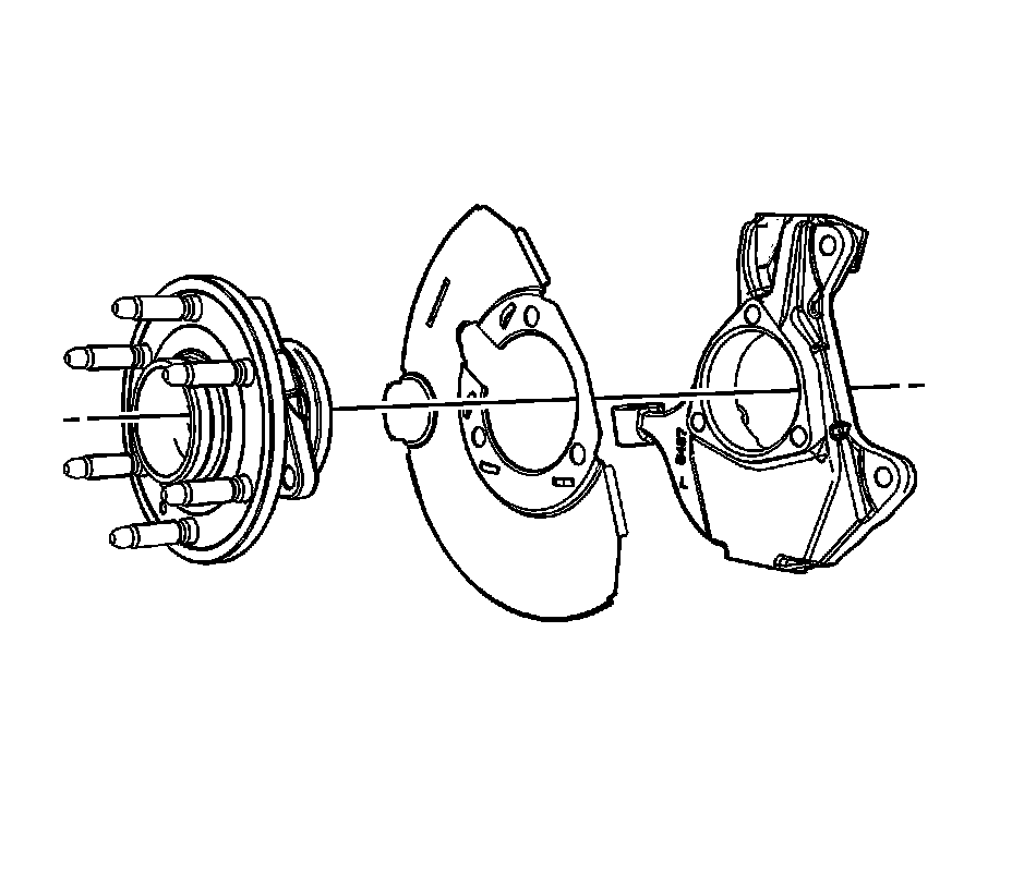 2. Install the wheel hub and bearing assembly. Refer to Front Wheel Hub, Bearing, and Seal Replacement (2500) Front Wheel Hub, Bearing, and Seal Replacement (2500)Front Wheel Hub, Bearing, and Seal Replacement (1500) Front Wheel Hub, Bearing, and Seal Replacement (1500).