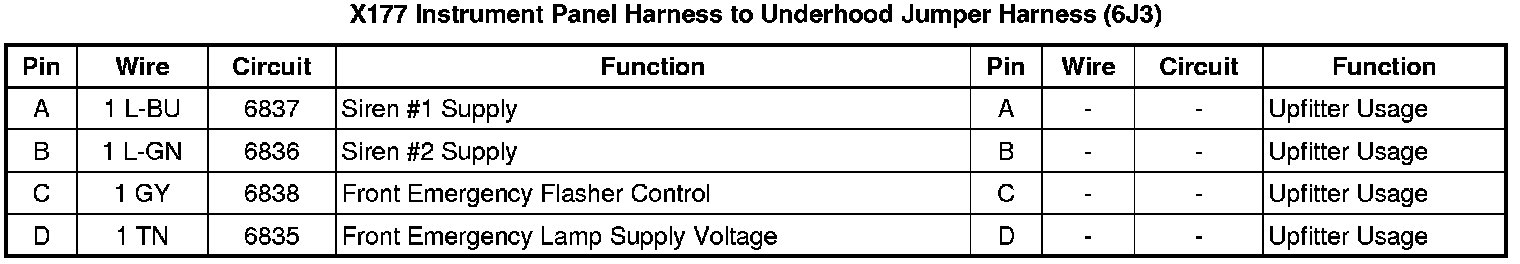 X177 Instrument Panel Harness to Underhood Jumper Harness (6J3)