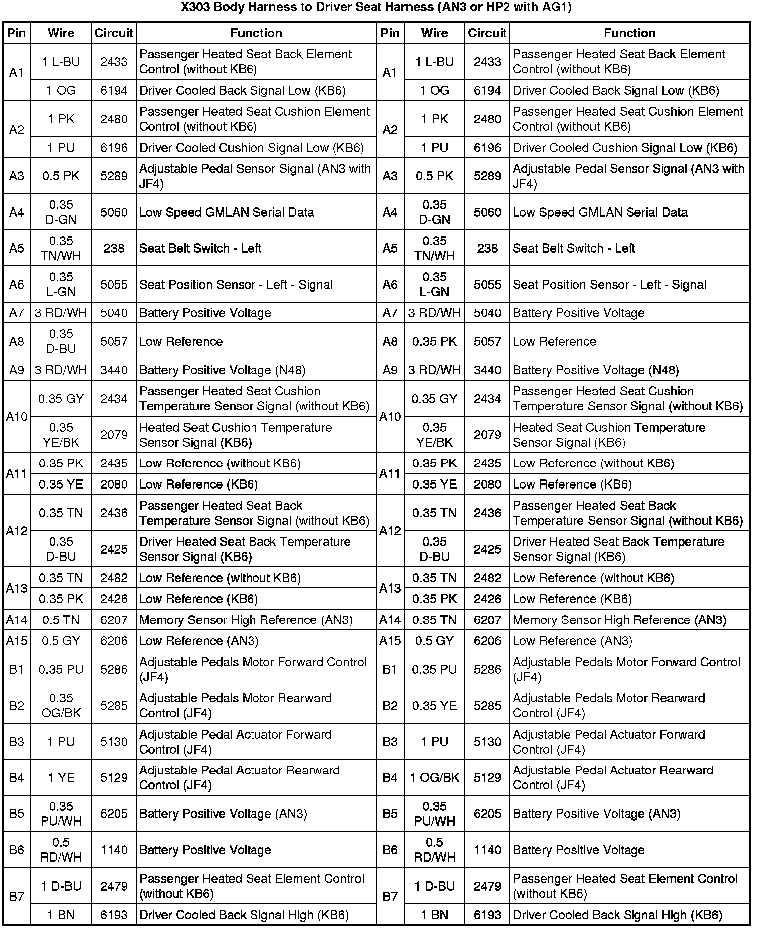 X303 Body Harness to Driver Seat Harness (without AN3 or HP2 with AG1)