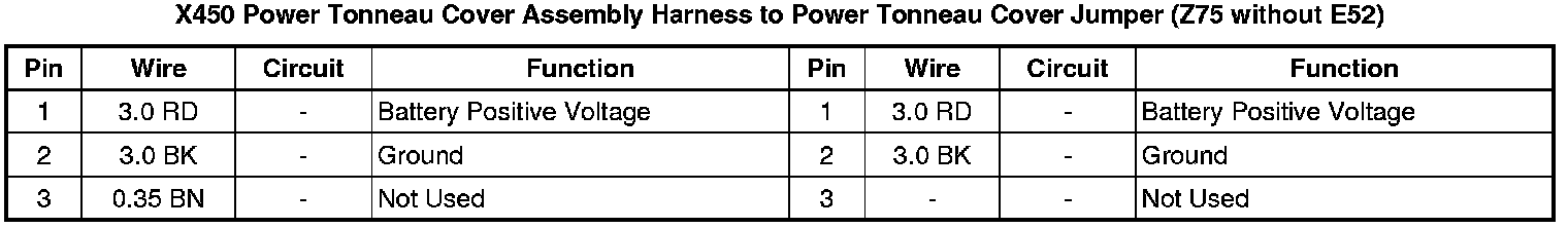 X450 Power Tonneau Cover Assembly Harness to Power Tonneau Cover Jumper (Z75 without E52)
