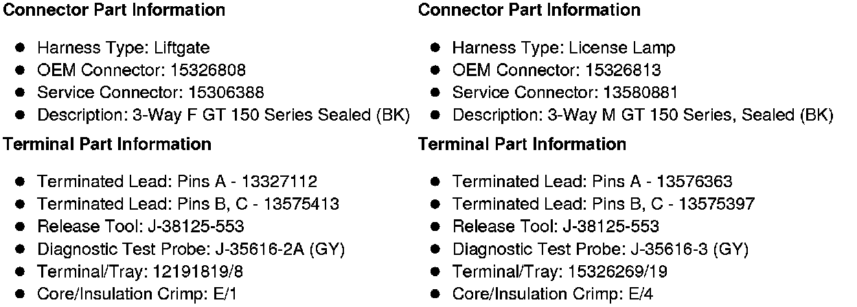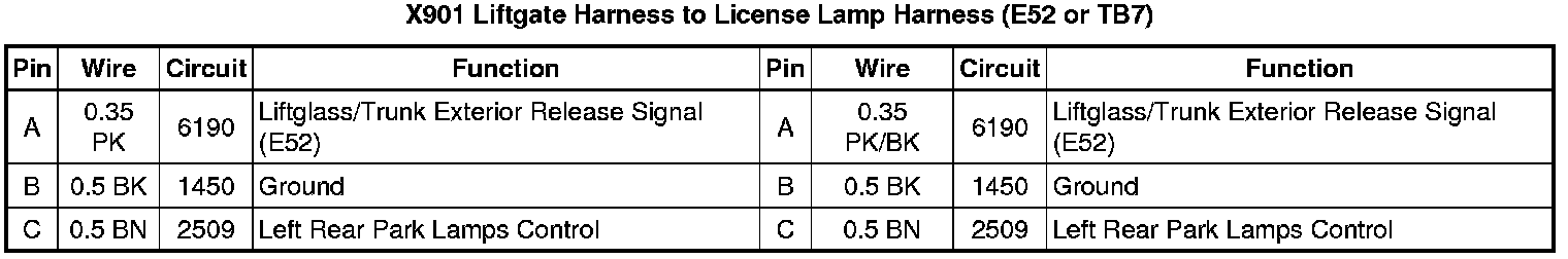 X901 Liftgate Harness to License Lamp Harness (E52 or