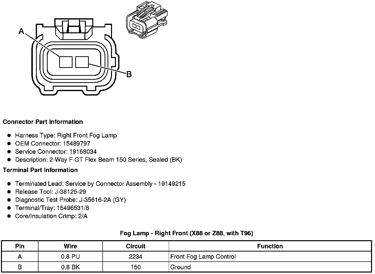 Fog Lamp - Right Front (X88 or Z88, with T96)