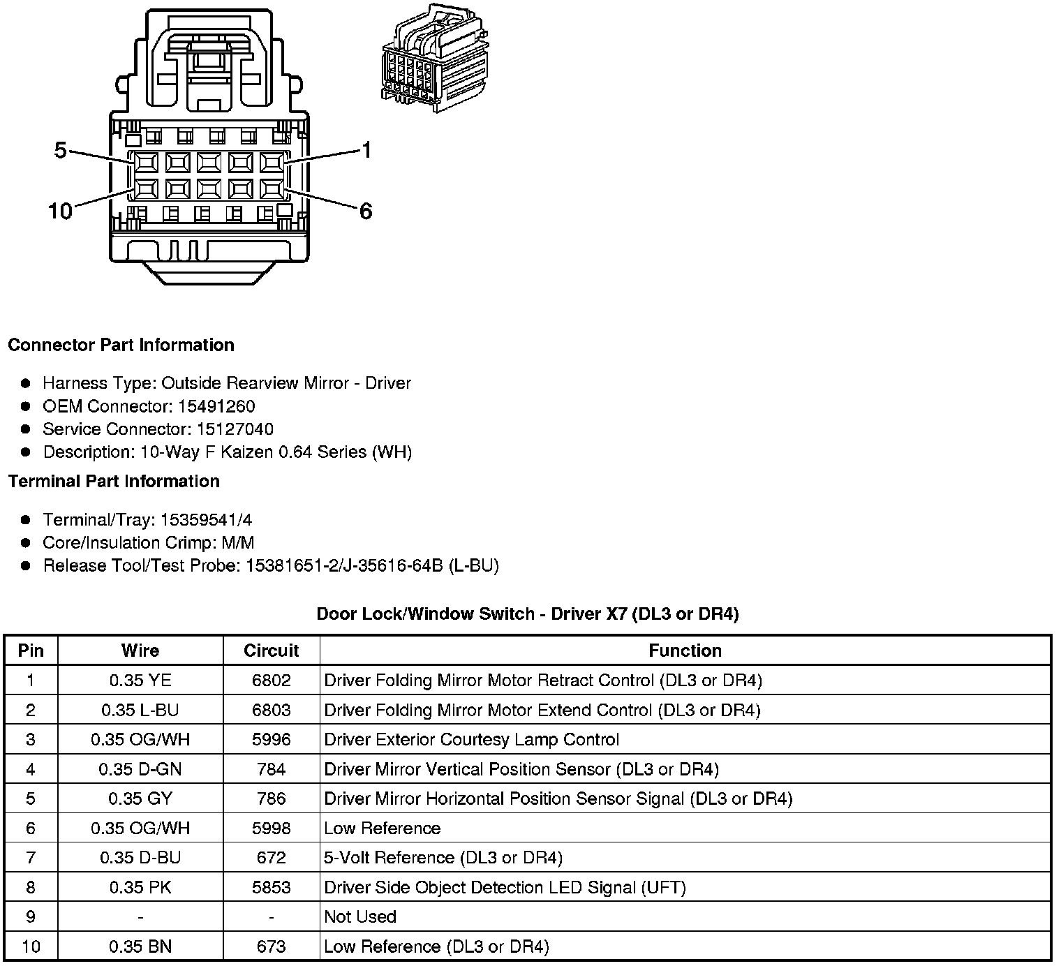 Door Lock/Window Switch - Driver X7 (DL3 or DR4)
