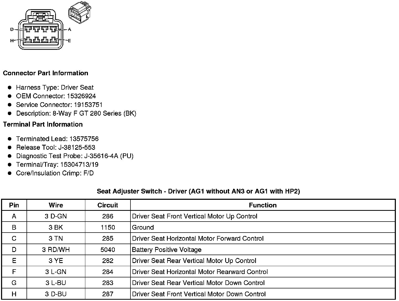 Seat Adjuster Switch - Driver (AG1 without AN3 or AG1 with HP2)