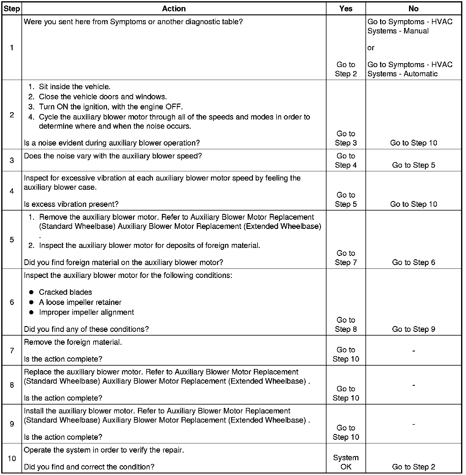 Noise Diagnosis - Auxiliary Blower Motor