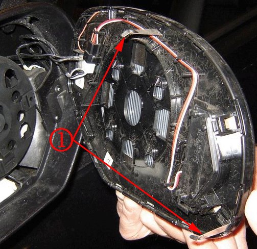 7. Bend the metal anti-rattle springs (1) outward slightly to increase the tension engagement to the mirror housing.
